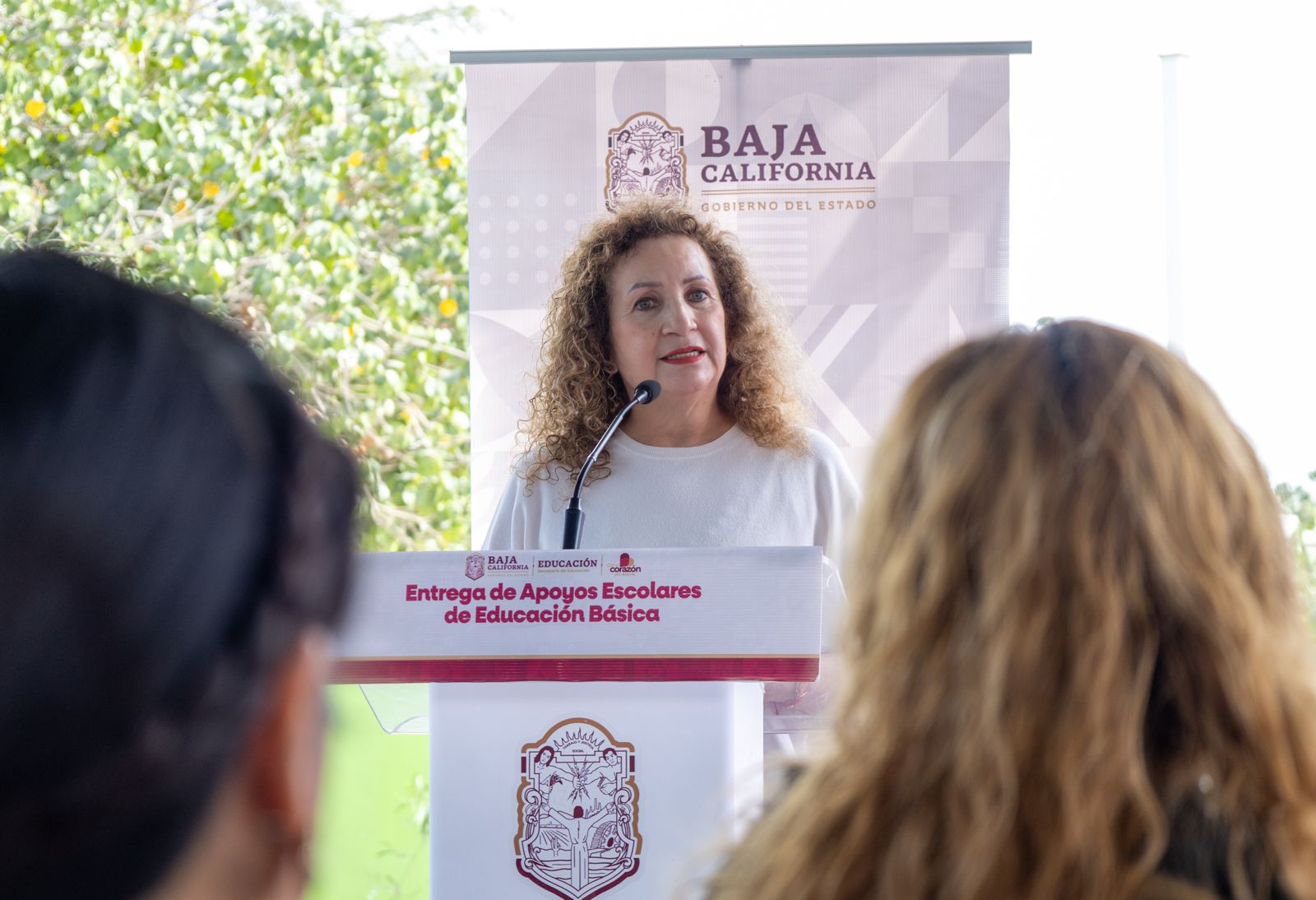 El evento protocolario también estuvo encabezado por la coordinadora de Programas de Apoyos Educativos, Susana Lizeth Peralta Morales, en representación de las madres y padres de familia, Madarly Jaqueline Martinez Moran y Derick Leonel Ríos Siordia, alumno beneficiado.