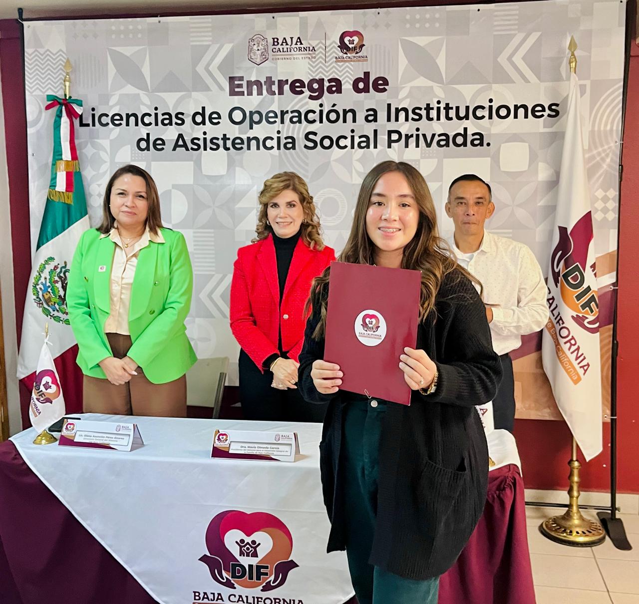 Lo anterior fue informado por la Dra. Mavis Olmeda García, Presidenta del Sistema DIF Baja California, quien realizó la entrega de 3 licencias de operación y 9 renovaciones a instituciones que trabajan en beneficio de la niñas, niños y adolescentes que más lo requieren.