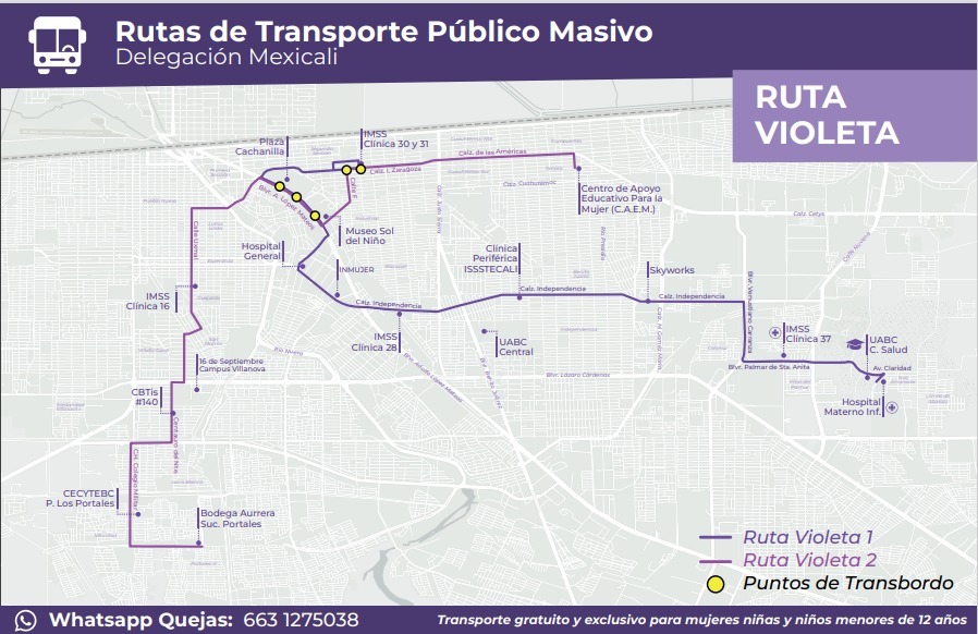 MEXICALI- Con el objetivo de extender los beneficios del Transporte Violeta, -exclusivo para mujeres, niñas y niños- a más comunidades, se incorporarán nuevos destinos a esta ruta estratégica.
