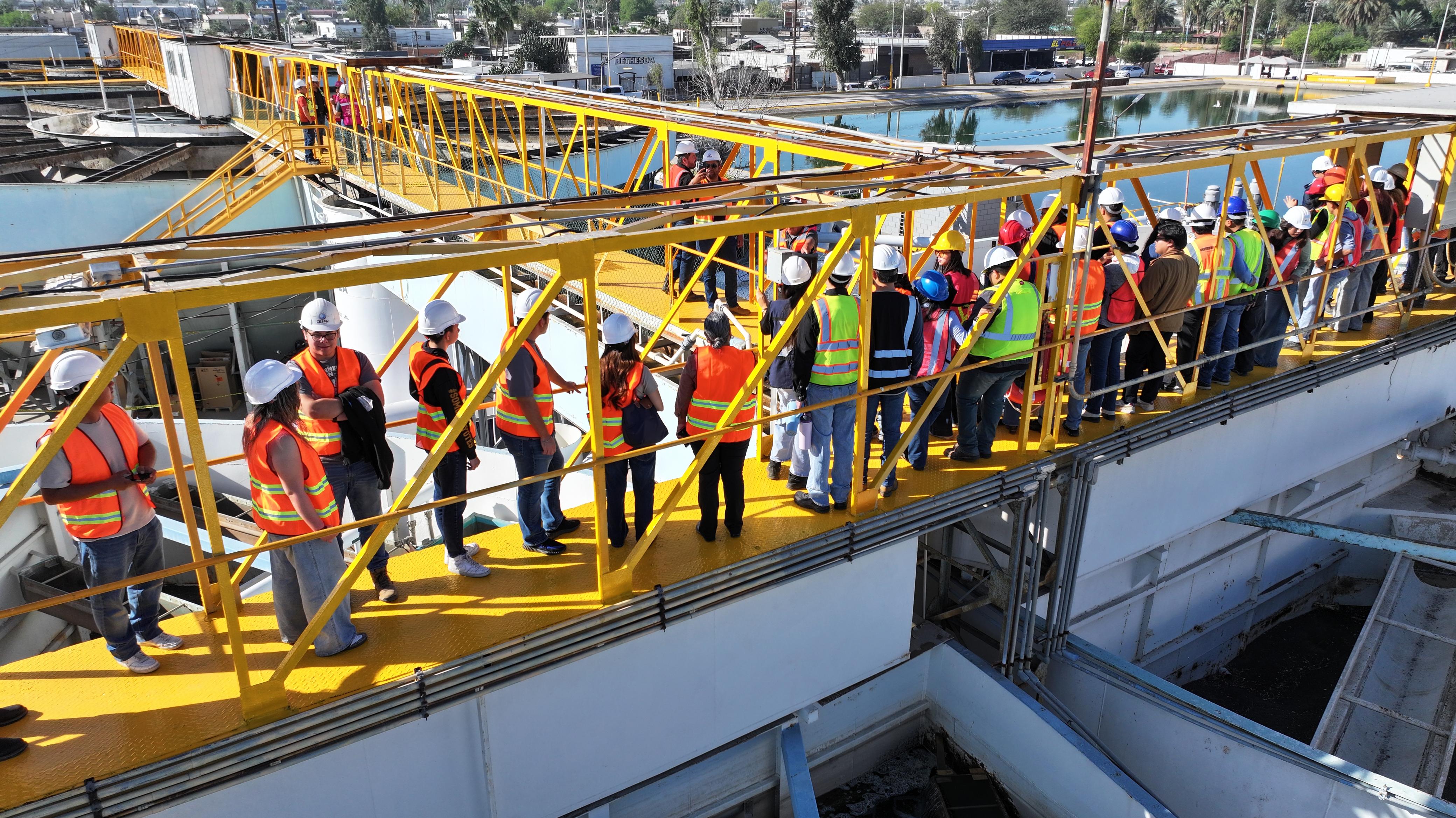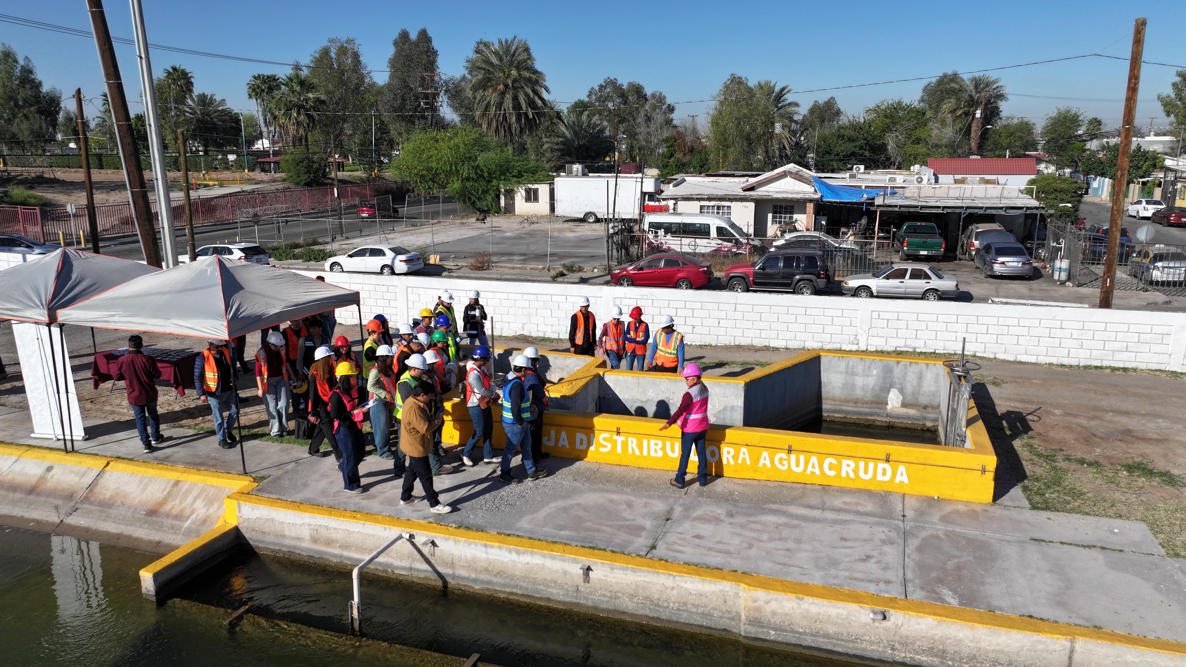 Alumnos de la UABC y de la Universidad Xochicalco realizaron un recorrido técnico por las instalaciones para conocer los procesos de potabilización y la operación del sistema que abastece de agua a Mexicali.