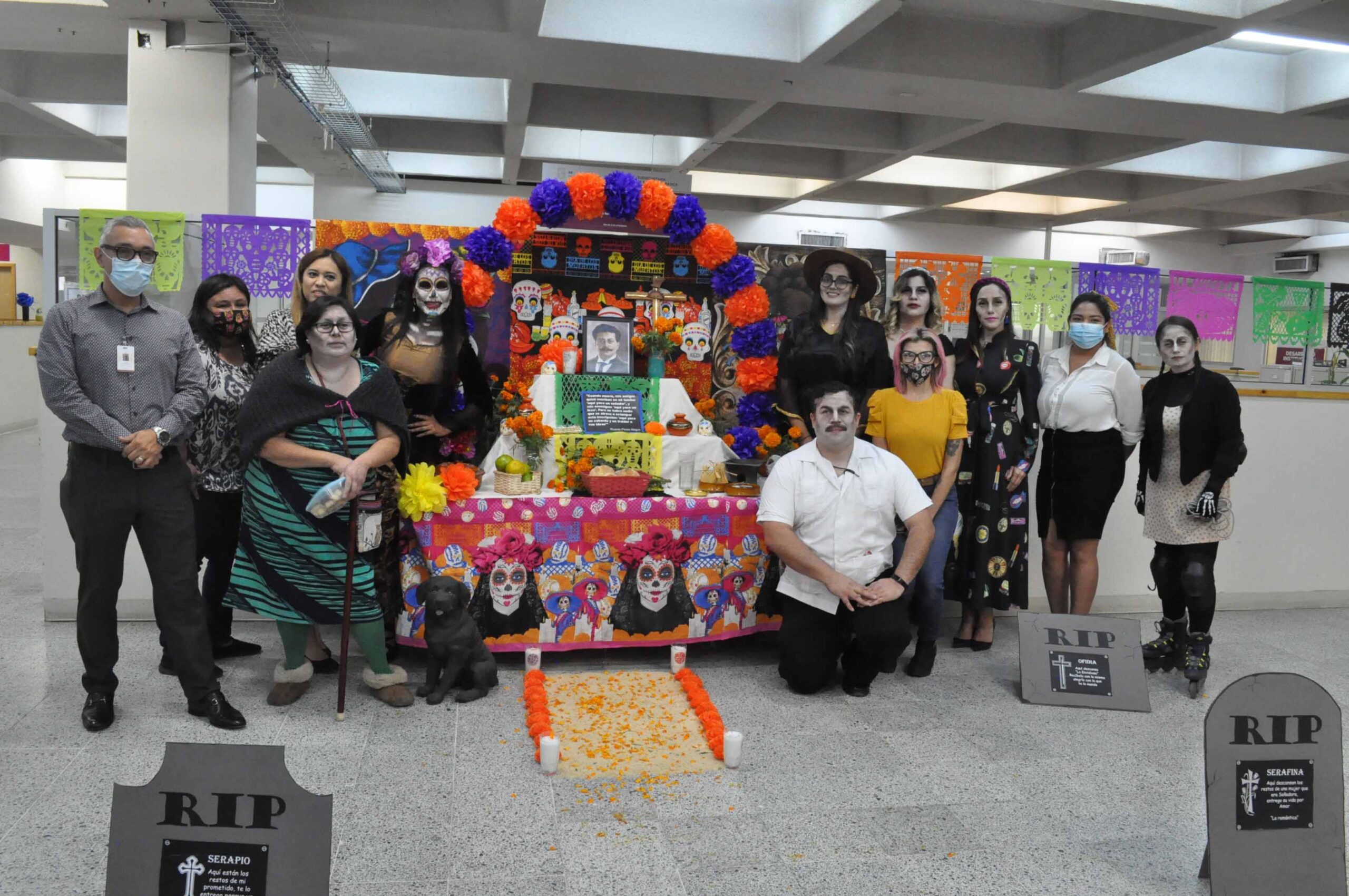 En el marco de las celebraciones del “Día de Muertos”, personal de la Secretaría de Educación (SE), presentó en las diversas sedes de las oficinas administrativas de la dependencia en Mexicali, la representación de la obra “El banquete de los muertos”, con el objetivo de fomentar las tradiciones mexicanas.