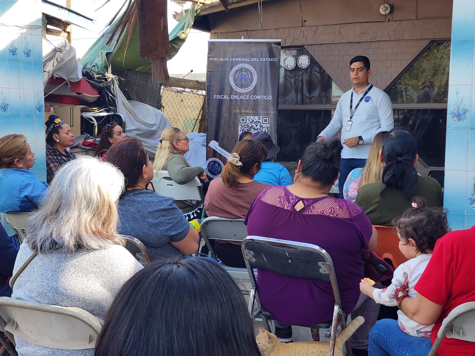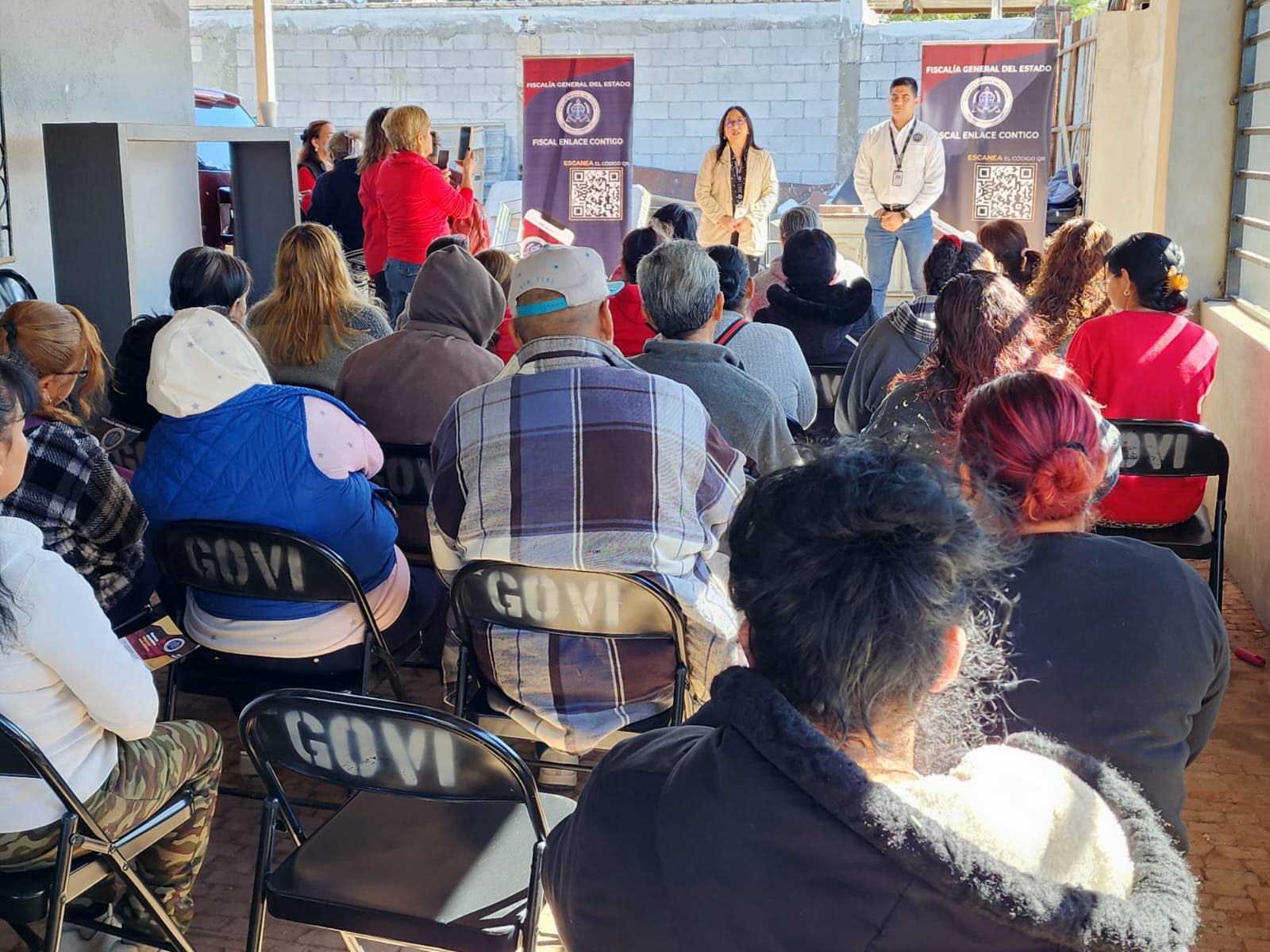 MEXICALI, BAJA CALIFORNIA, A 27 DE FEBRERO DE 2026.- Con el objetivo de fortalecer y promover la «Cultura de la Denuncia», personal de la Fiscalía General del Estado, a través del programa “Fiscal Enlace Contigo”, sostuvo encuentros con residentes del fraccionamiento Villanova y la colonia Los Encinos y González Ortega.