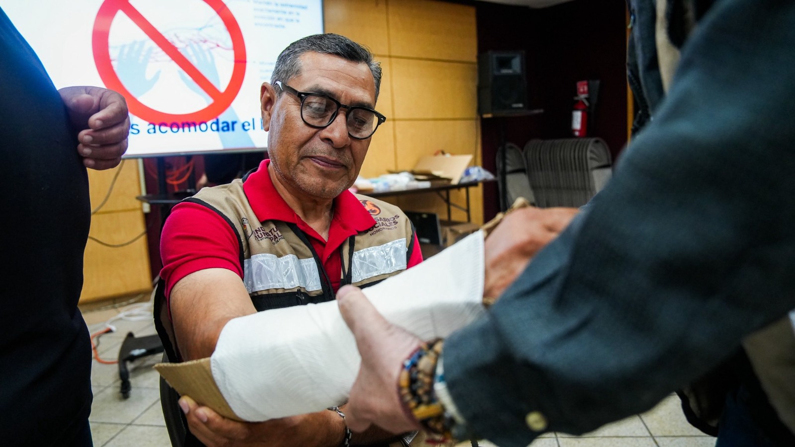 Durante la actividad, el Síndico Procurador, José Oscar Vega Marín, destacó que este esfuerzo forma parte del proceso de consolidación de la primera generación de comisarios sociales, quienes han construido, junto con el Ayuntamiento, un modelo de trabajo basado en la colaboración y el aprendizaje mutuo. Señaló que, a través de estas capacitaciones, las y los comisarios fortalecen su papel como líderes comunitarios, adquiriendo herramientas prácticas que les permiten orientar y actuar ante situaciones de emergencia.