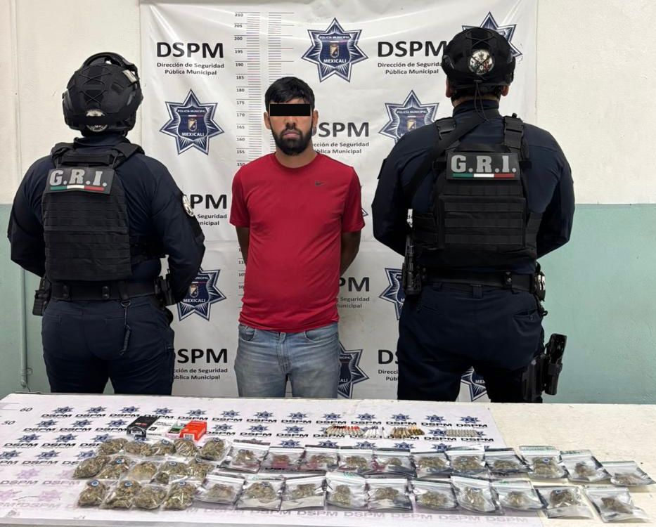 Mexicali, Baja California, a 16 de marzo de 2026. Derivado de trabajos de prevención y vigilancia que se realizan de forma continua por parte de la Dirección de Seguridad Pública Municipal de Mexicali (DSPM), se detuvo a un hombre que se encontraba en posesión de varias dosis de marihuana en diversas presentaciones, logrando así retirar de las calles sustancias que resultan nocivas para la salud pública.
