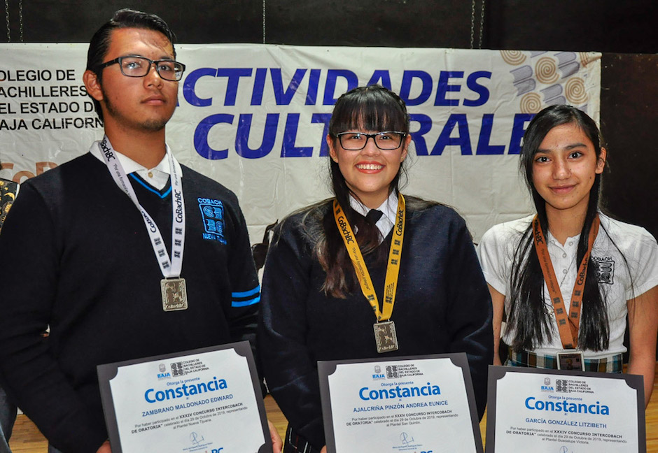 Estudiantes del Colegio de Bachilleres del Estado de Baja California (CoBachBC) se dieron cita en el Teatro del Plantel Mexicali para participar en el XXXIV Concurso Intercobach de Oratoria, resultando ganadora, la alumna del Plantel San Quintín, Andrea Eunice Ajalcriña Pinzón.