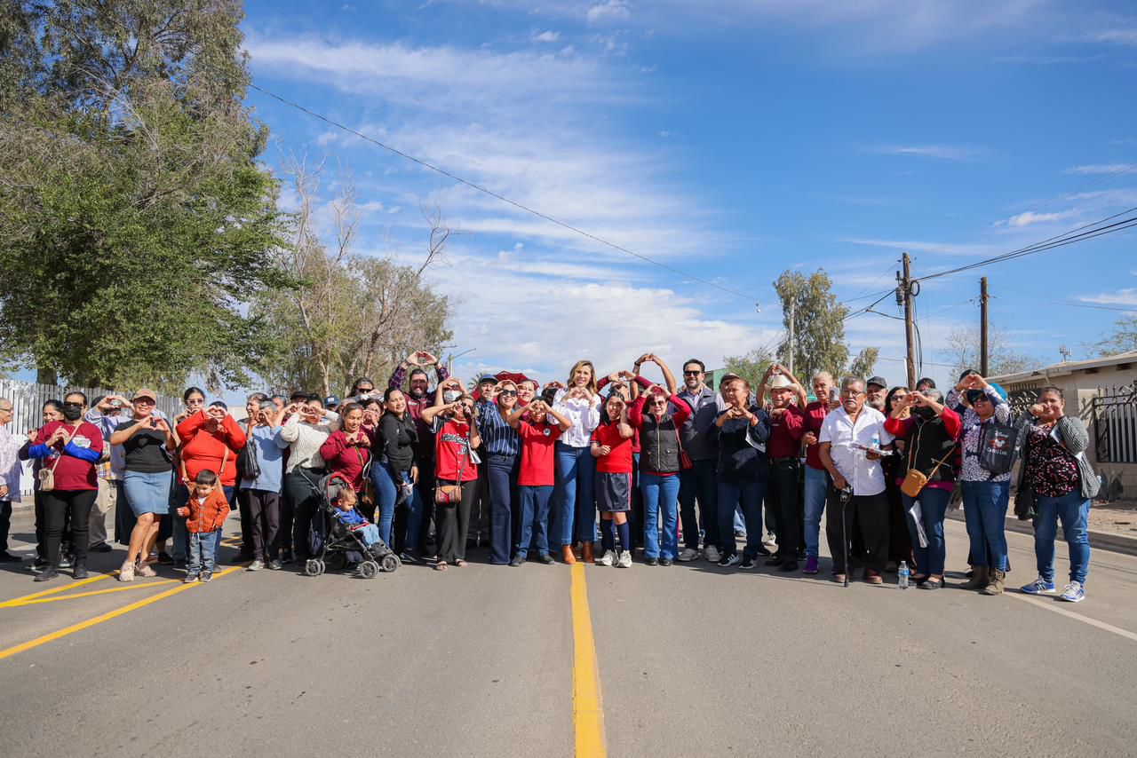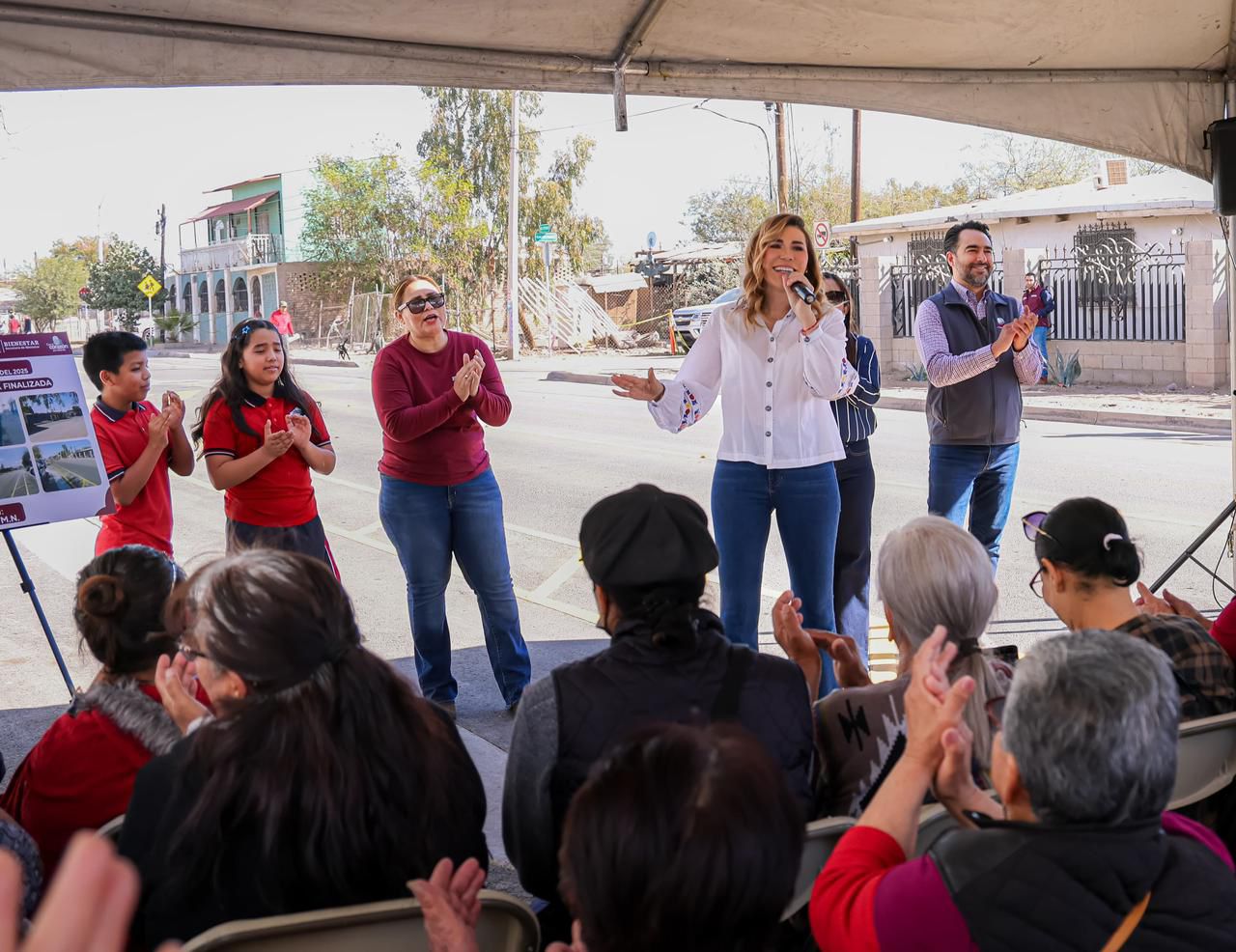 MEXICALI.- Como parte de las acciones para mejorar la movilidad y la calidad de vida de las familias, la gobernadora Marina del Pilar Avila Olmeda encabezó la entrega de una obra de pavimento en la colonia Solidaridad Social, en beneficio de 430 personas. Estos trabajos se apegan al programa «Calles seguras, Familias seguras” para la rehabilitación de vialidades en la entidad.