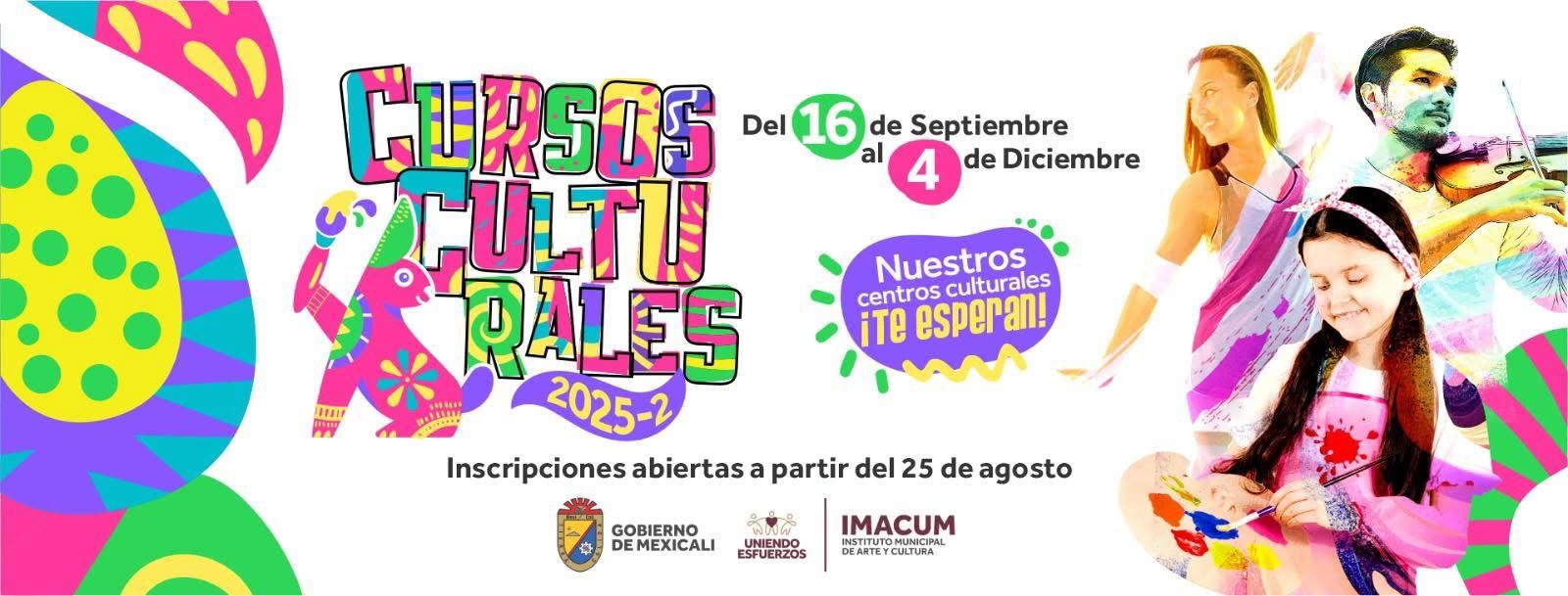 Mexicali, B.C. A 28 agosto 2025.– El Gobierno de Mexicali, a través del Instituto Municipal de Arte y Cultura (IMACUM), anuncia la apertura de su oferta de cursos culturales para el periodo 2025-2, esta temporada de aprendizaje y creatividad se llevará a cabo del 16 de septiembre al 4 de diciembre en diversas Casas de la Cultura, tanto en la ciudad como en el Valle de Mexicali.