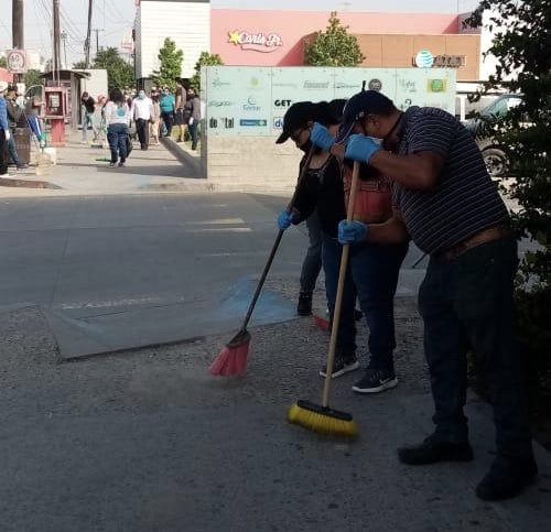 García Dworak explicó que el proceso de desinfección inició desde las 7:00 horas de este miércoles, con el apoyo de los comerciantes que aportaron lo necesario para el saneamiento de las áreas públicas, como escobas, cubetas, desinfectantes,  para lograr su objetivo.