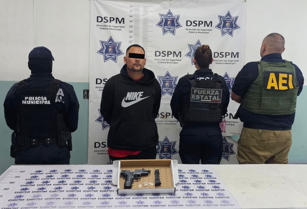 Mexicali, Baja California, a 18 de enero de 2026. Durante un operativo coordinado entre la Policía Municipal de Mexicali, la Fuerza Estatal de Seguridad Ciudadana (FESC) y la Fiscalía General del Estado (FGE), fue detenido un hombre luego de que realizó detonaciones de arma de fuego causando daños a un vehículo en el fraccionamiento Villas del Paraíso.