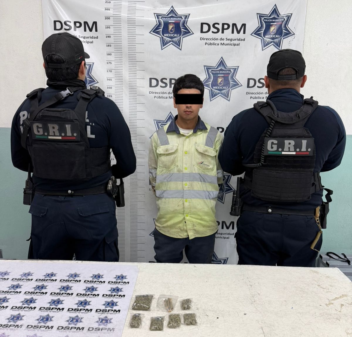 Mexicali, Baja California, a 07 de abril de 2026. En una rápida y oportuna intervención derivada de un recorrido de vigilancia preventivo implementado la noche de este lunes en la colonia Aurora, agentes municipales del Grupo de Reacción Inmediata (G.R.I) detuvieron en una breve pero intensa persecución a un motociclista al que se le localizaron seis bolsas de cierre hermético transparentes, de regular tamaño, que contenían marihuana.