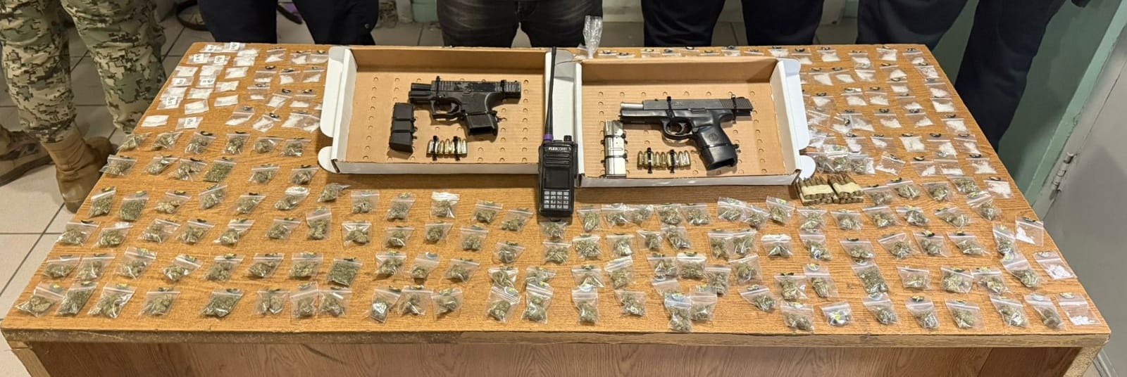 -Durante la intervención se aseguraron dos armas de fuego calibre 9 milímtros y más de 200 envoltorios con droga.