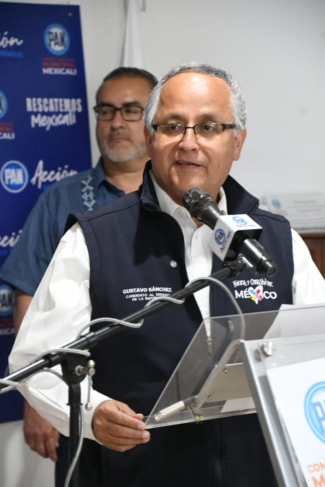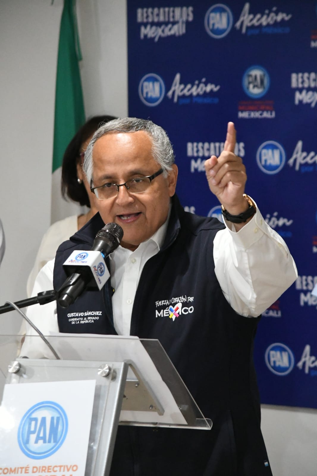 Así lo dijo el virtual senador de la república por Baja California Gustavo Sánchez Vásquez a la ciudadanía en general ante los medios de comunicación que se dieron cita en las instalaciones del Comité Directivo Municipal del Pan en Mexicali, donde estuvo presente también el dirigente estatal de dicho partido, Mario Osuna Jiménez.