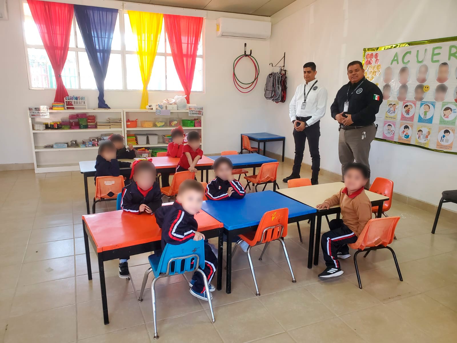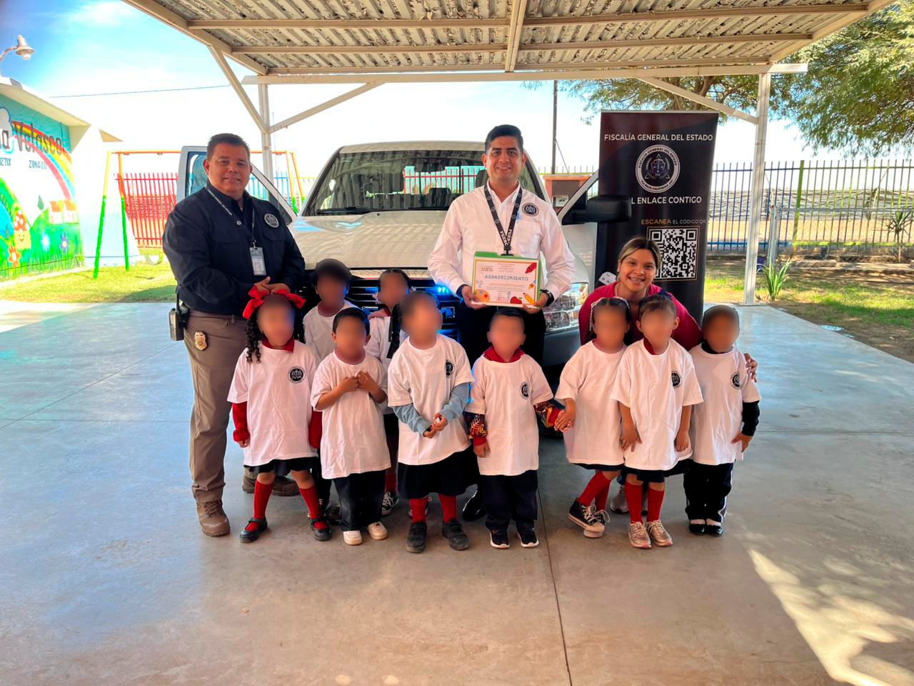 En las visitas a los jardines de niños «José Maria Velazco» del ejido Pescaderos y Matías Gómez de la colonia Oribe de Alva se abordaron temas sobre justicia y cultura de la legalidad. Los alumnos participaron en un taller donde identificaron a la Fiscalía como una institución que protege sus derechos. Como parte de la dinámica, los pequeños interactuaron con la unidad patrulla de «Fiscal Enlace Contigo», aprendiendo a identificar los códigos de emergencia, sonidos y colores de las unidades policiales.