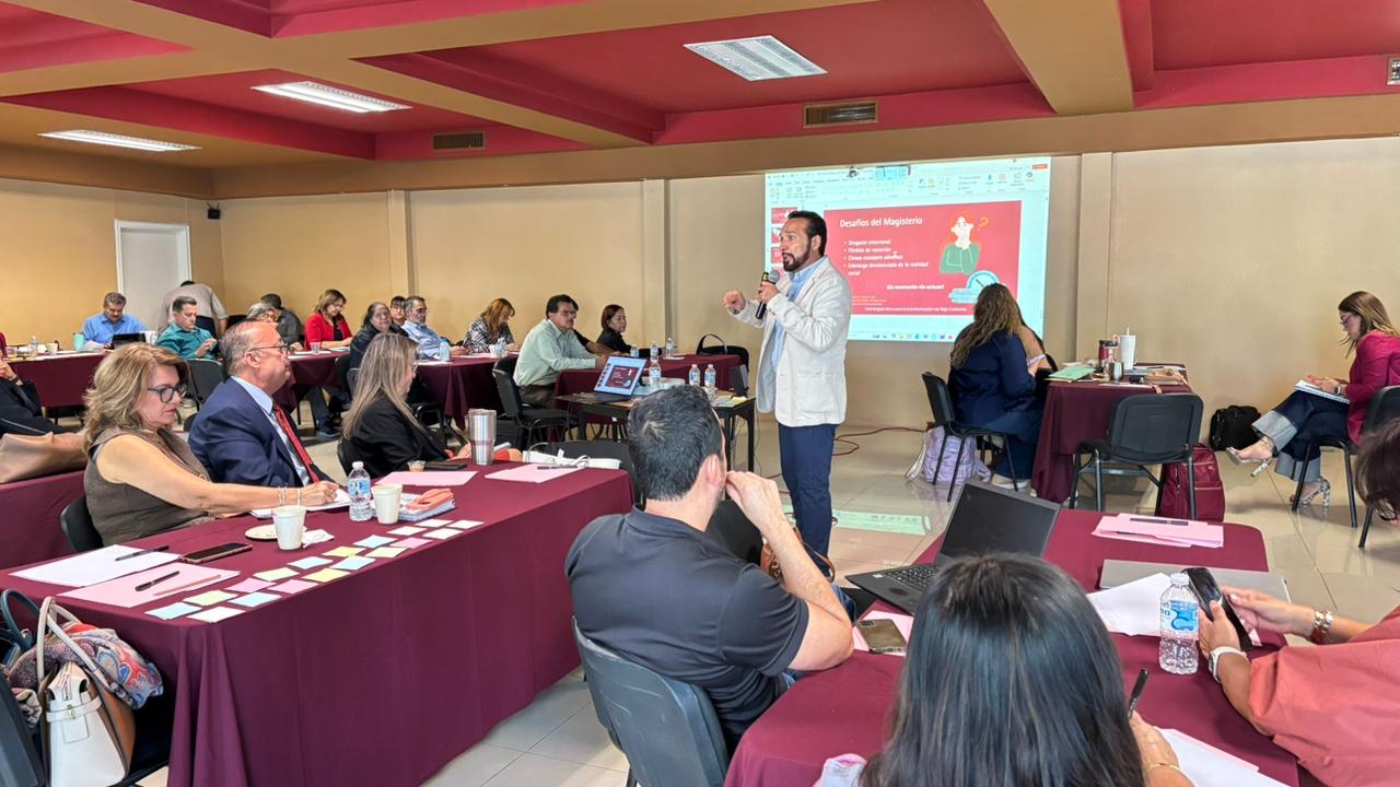 MEXICALI. La Secretaría de Educación de Baja California, impartió el taller denominado “Transformación docente y bienestar emocional” a personal directivo de escuelas formadoras de docentes públicas y privadas, con la finalidad de explorar desde una perspectiva filosófica y práctica, cómo el docente puede cultivar resiliencia y bienestar emocional, transformando su experiencia en el aula promoviendo una educación auténtica y significativa.