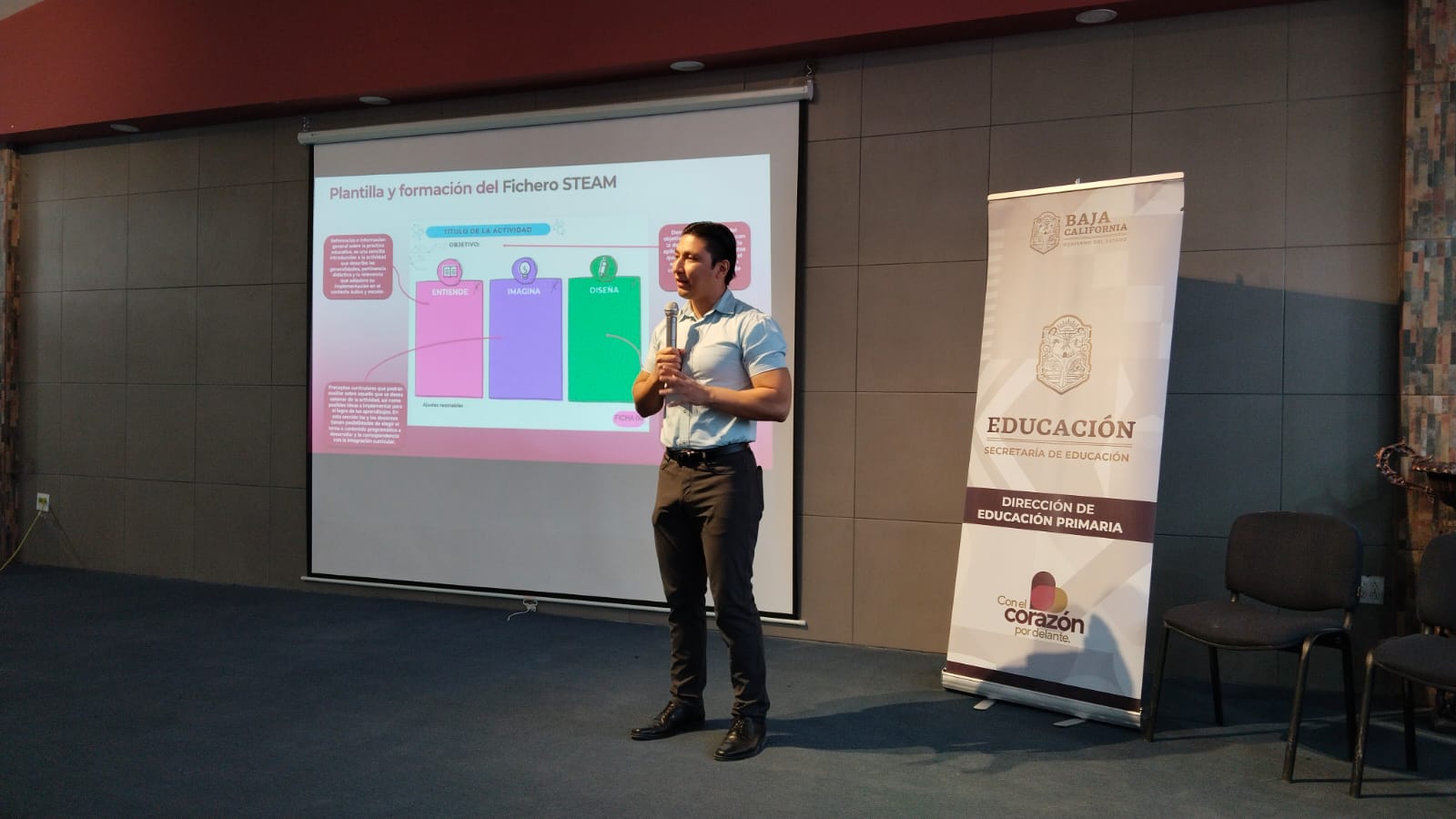MEXICALI, B.C. Con el propósito de fortalecer las prácticas pedagógicas y promover una enseñanza innovadora, la Secretaría de Educación llevó a cabo el Segundo Taller de Trabajo con la Metodología STEAM, impartido por el coordinador estatal de esta estrategia educativa, Yataro Adolfo Loeza Mireles.