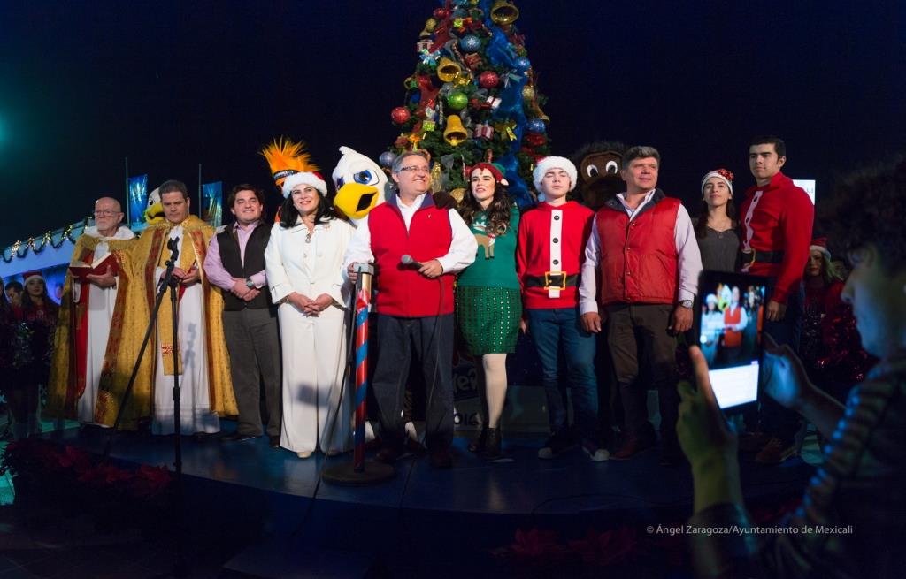 El Alcalde de Mexicali Gustavo Sánchez Vásquez, inauguró la “Villa Navideña” y realizó el encendido del Árbol, acompañado por la Presidenta de DIF Municipal Margarita Flores de Sánchez y la Directora del DIF Estatal Brenda Ruacho de Vega.
