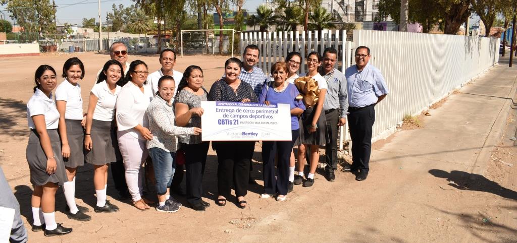 Esta mañana se llevó a cabo la inauguración del cerco perimetral del Centro de Bachillerato Tecnológico Industrial y de Servicios No.21 (CBTIS 21) que gestionó la Diputada Victoria Bentley ante el Gobierno del Estado con un valor de más de 387 mil pesos.