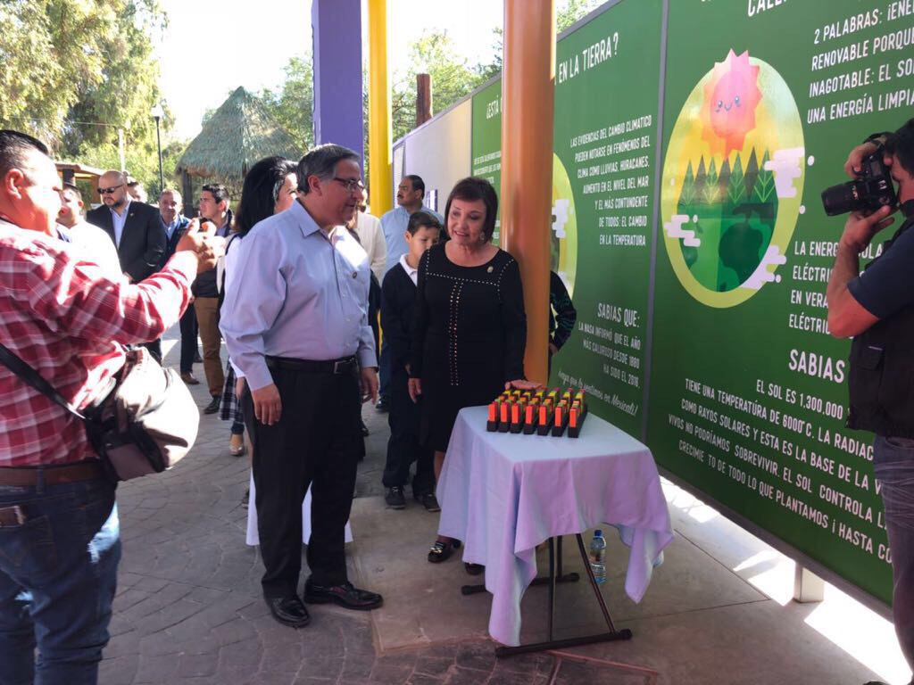 Con el propósito de fomentar el ahorro de energía y el cuidado del medio ambiente en los mexicalenses, el Presidente Municipal de Mexicali Gustavo Sánchez Vásquez, acompañado de su esposa la Presidenta del DIF Municipal Margarita Flores de Sánchez, inauguraron la Plaza Solar en el Bosque y Zoológico de la Ciudad, proyecto promovido por la regidora Natalia Margarita Figueroa González