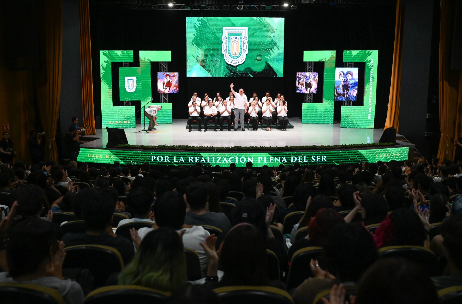 Durante su intervención, el doctor Palafox Maestre destacó que la máxima casa de estudios de Baja California es más que una institución académica: “Desde este momento, la UABC no sólo es la universidad a la que vendrán a adquirir conocimientos, considérenla desde ya su segundo hogar, un espacio donde todas y todos ustedes van a ser siempre escuchados y valorados”.