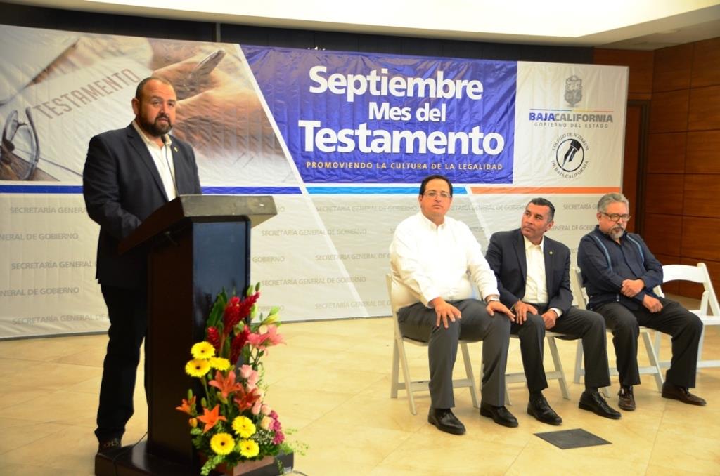 La Administración estatal que encabeza el Gobernador Francisco Vega de Lamadrid, en coordinación con la Secretaría General de Gobierno (SGG) y el Colegio de Notarios de Baja California, invitan a los ciudadanos a sumarse a la campaña “Septiembre Mes del Testamento”, que arrancó al inicio de este mes y tiene vigencia hasta el 31 de octubre.