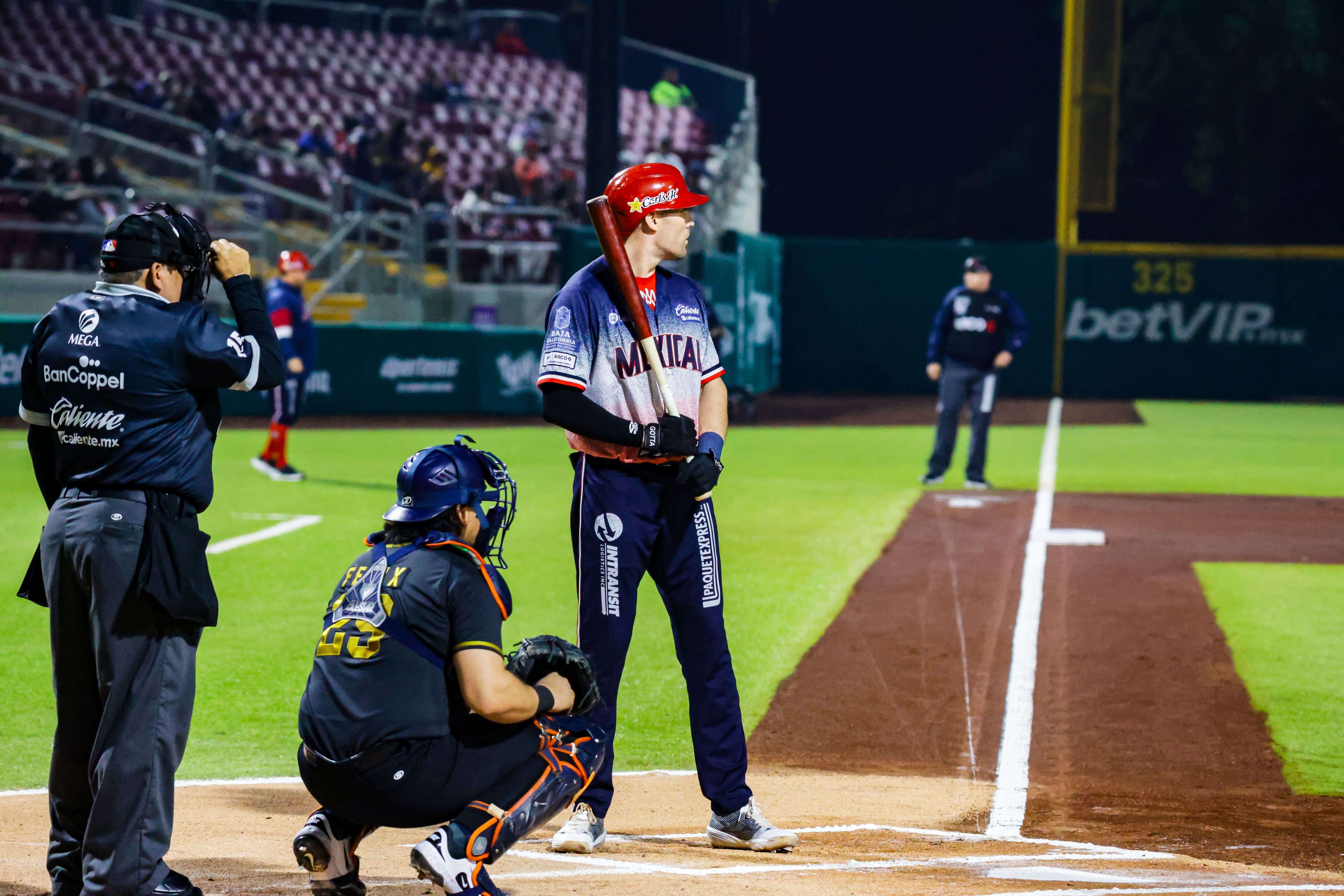 Tepic, Nayarit, 6 de diciembre de 2025. Coloso del Pacífico. Los Águilas de Mexicali cayeron en el primero de la serie por marcador de 10 carreras a 6 ante los Jaguares de Nayarit, dentro de las acciones de la temporada 2025-2026 de la Liga ARCO Mexicana del Pacífico, presentada por Caliente.mx.