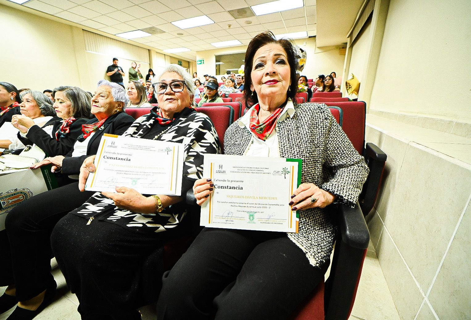 Mexicali, Baja California, sábado 20 de diciembre de 2025.- La Facultad de Ciencias Humanas (FCH) de la Universidad Autónoma de Baja California (UABC) celebró la ceremonia de egreso de 27 personas adultas mayores, correspondientes a la trigésima tercera generación del programa de Educación Sustentable para Adultos Mayores (ESAM).