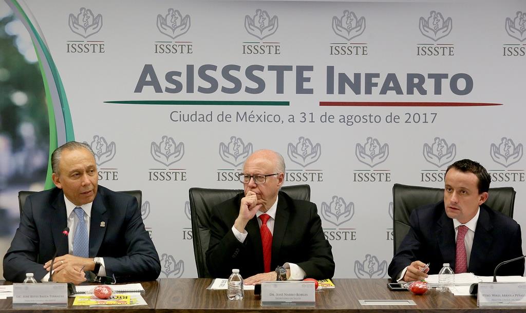 Flanqueado por el Secretario de Salud y el titular del IMSS, José Narro Robles y Mikel Arriola Peñalosa, respectivamente, el Director General delISSSTE, José Reyes Baeza Terrazas, puso en marcha el programa AsISSSTE Infarto en nueve hospitales regionales y generales de la Ciudad de México y el área metropolitana, cuyo objetivo es proporcionar al paciente infartado atención rápida y terapia trombolítica en los primeros 30 minutos de su ingreso hospitalario y a quien lo amerite, tratamiento de hemodinamia en 60 o 90 minutos; acciones enfocadas a salvar vidas y limitar daño cardiaco.