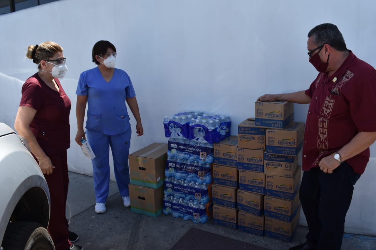 Dando seguimiento a la entrega de apoyos a los diversos hospitales que han sido designados como centros de recepción y atención de ciudadanos que hayan sido diagnosticados como positivos de covid 19, el Secretario General del Sindicato de Burocratas Sección Mexicali Manuel Guerrero Luna realizó una nueva entrega de material al hospital de Issstecali.