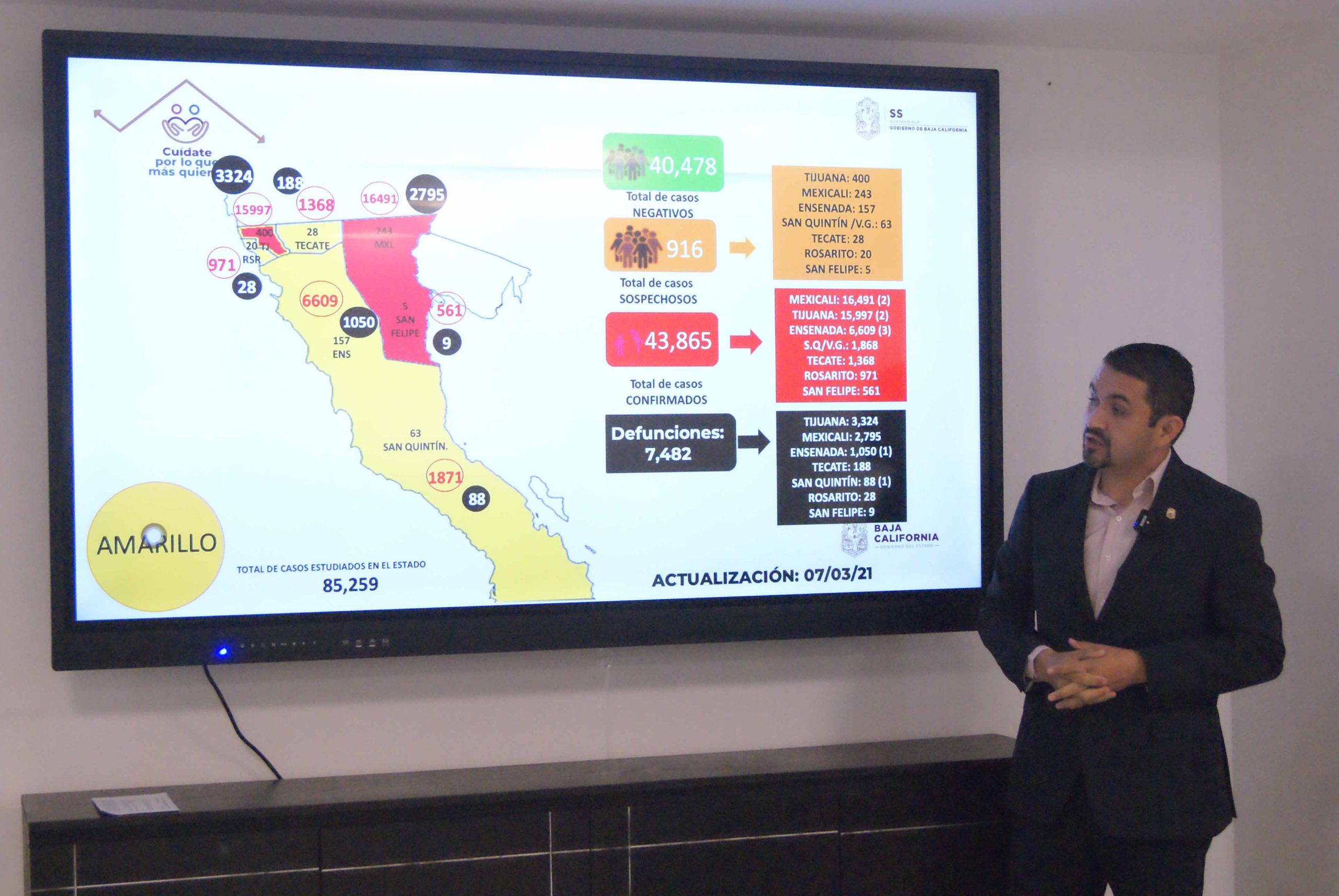 En cuanto a defunciones por coronavirus, reportan acumuladas 7 mil 482. Tijuana con 3,324, Mexicali 2,795; Ensenada 1,050; Tecate 188; Rosarito 28; San Quintín / Vicente Guerrero con 88 y San Felipe 9 fallecimientos.