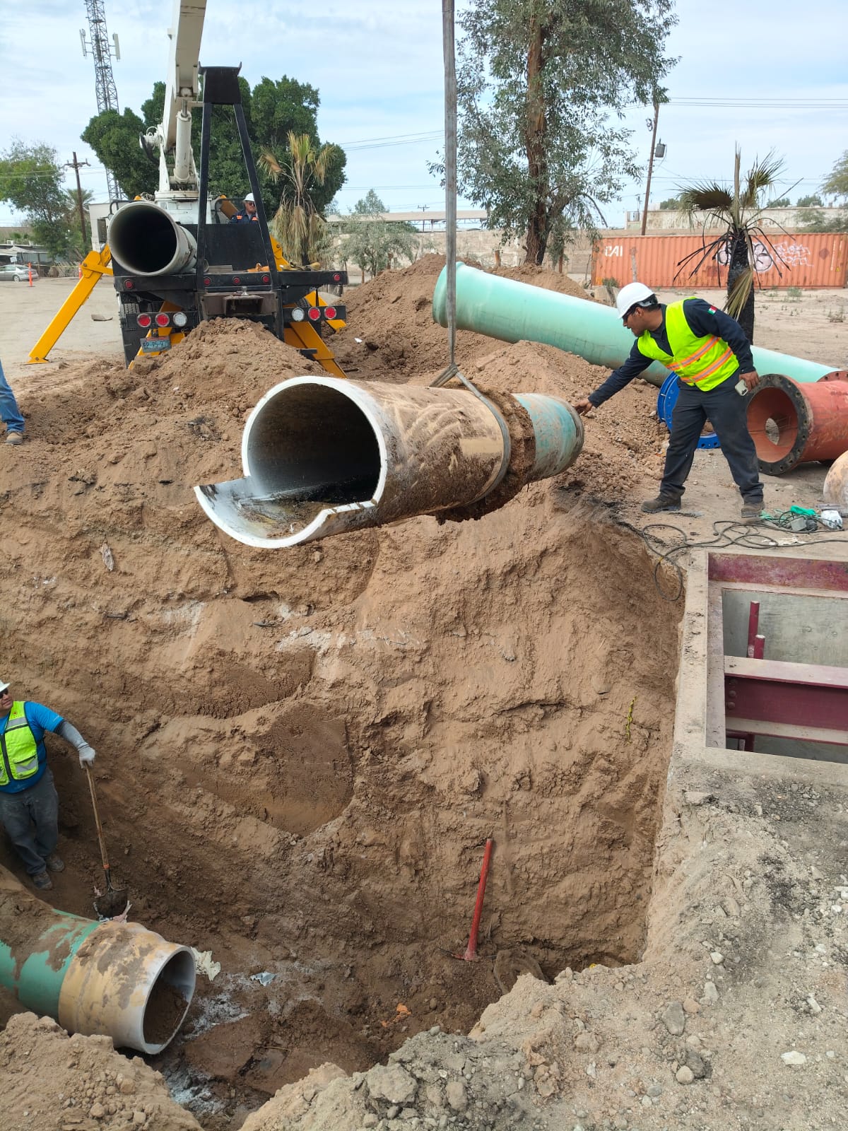 Mexicali.-La Comisión Estatal de Servicios Públicos de Mexicali (CESPM) informó el avance y conclusión de los trabajos de reparación del emisor de 24 pulgadas de diámetro de la Planta de Bombeo de Aguas Residuales (PBAR) 3, ubicada en la colonia El Porvenir, una obra estratégica para el correcto funcionamiento del sistema de conducción hacia la PTAR Zaragoza.