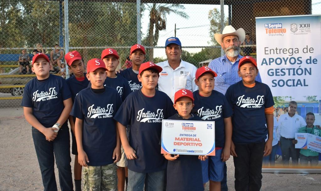 El Diputado Estatal entregó camisetas para más de 150 niños pertenecientes a la Liga Infantil de la Campesina del Pacifico, la cual es integrada por los equipos de béisbol Algodoneros del Ejido Oviedo Mota, Cachorros de la Colonia La Puerta, Indios Jr. del Ejido Cucapah Mestizo, Indios del Ejido Sonora, Halcones del Ejido Nayarit y Potros del Ejido Durango.