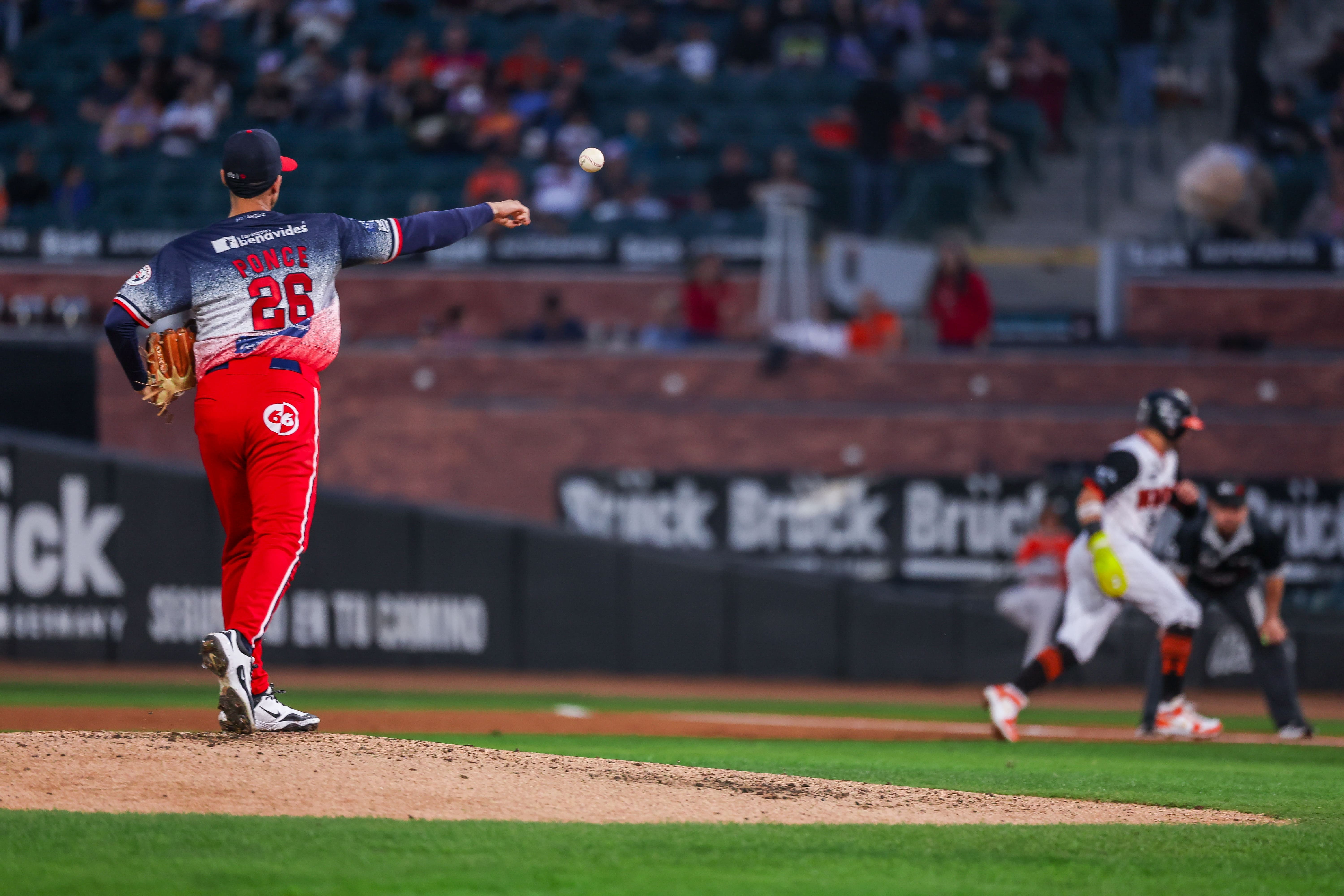 Hermosillo, Sonora, 14 de diciembre de 2025. Estadio Fernando Valenzuela. Tarde de pitcheo y defensa por segundo juego consecutivo en donde el resultado le favoreció a Naranjeros de Hermosillo por score de 1 carrera por 0 sobre Los Águilas de Mexicali, para quedarse con la serie en actividad de la temporada 2025-2026 de la Liga ARCO Mexicana del Pacífico, presentada por Caliente.mx