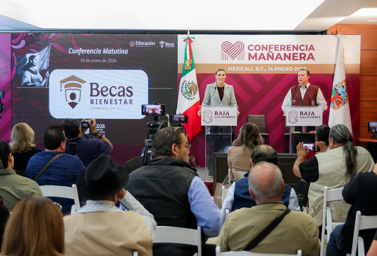 Por su parte, el titular de la Coordinación Nacional de Becas para el Bienestar en la entidad, Carlos Perezares Naveja, comentó que al cierre de 2025 se tuvieron 291 mil 724 becarios en Baja California, con una inversión total de 528 millones 958 mil 900 pesos. A partir de febrero de este año iniciarán asambleas informativas para la ampliación de la Beca Universal Rita Cetina en educación primaria, que consistirá de un apoyo único anual de 2 mil 500 pesos por estudiante para uniformes y útiles escolares.