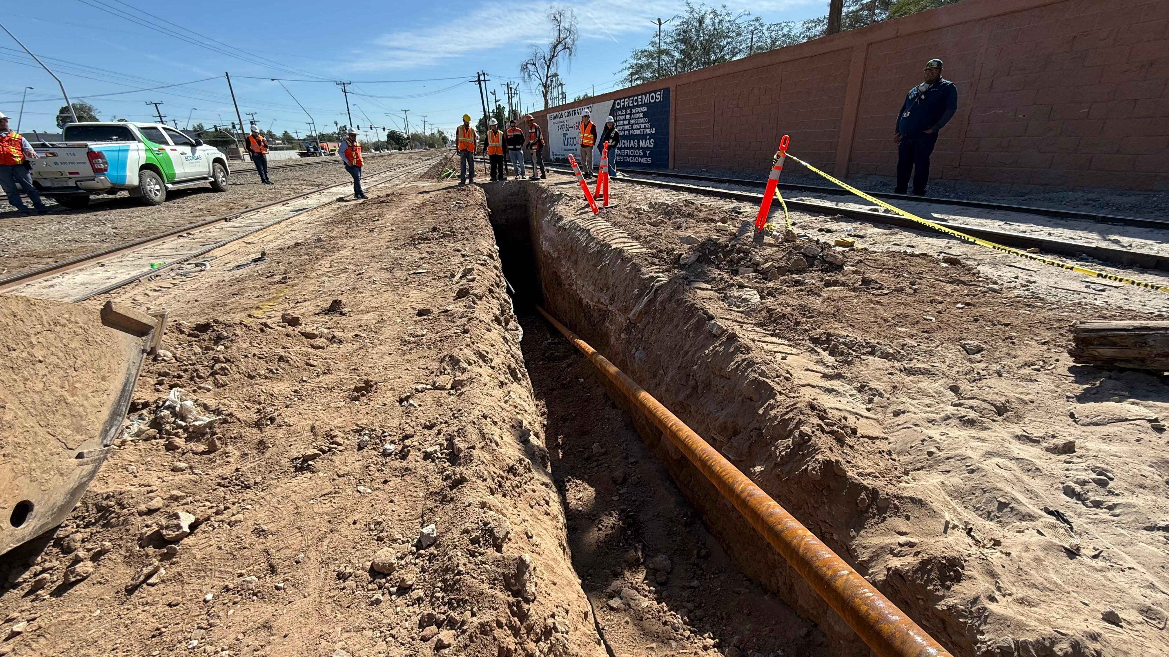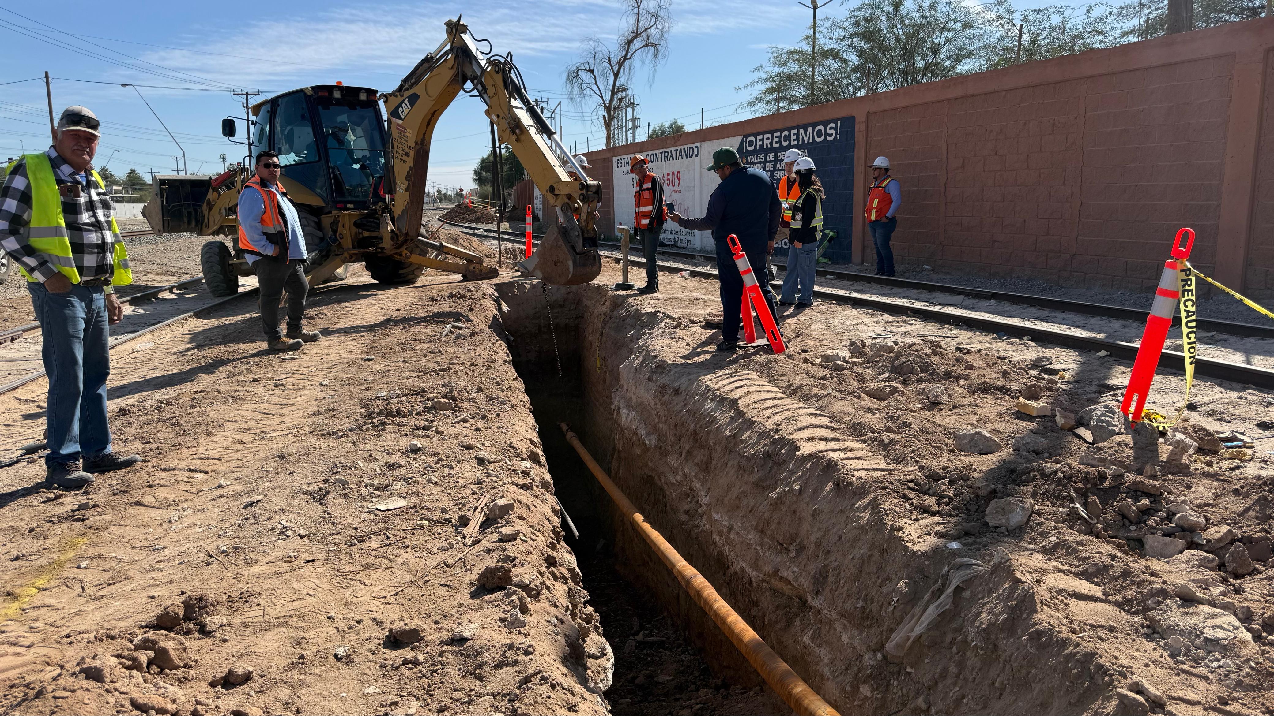 CESPM reemplaza más de un kilómetro de tubería de asbesto cemento por PVC hidráulico de 12 pulgadas en la carretera a San Luis Río Colorado; la inversión supera los 8.3 millones de pesos y registra un 38 % de avance, en beneficio de 2,772 habitantes.