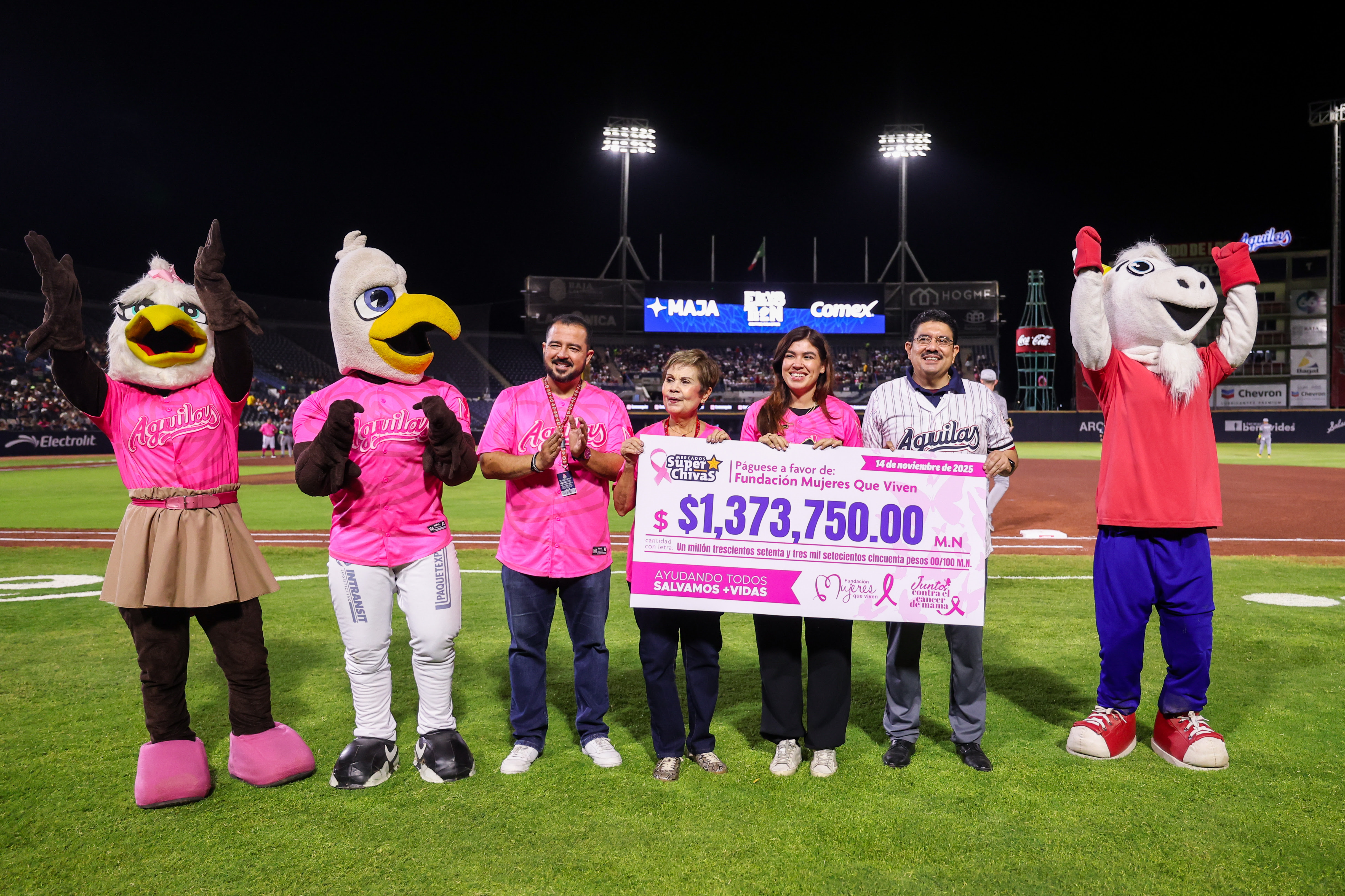 Mexicali, B.C., 14 de noviembre de 2025. El Nido de los Águilas. En el marco de la Serie Mujeres que Viven, Mercado Super Chivas se unió a la Fundación Mujeres Que Viven para apoyar con un importante donativo, mismo que fue recaudado dentro de su tradicional campaña de donación realizada en cada una de sus sucursales de Mexicali.
