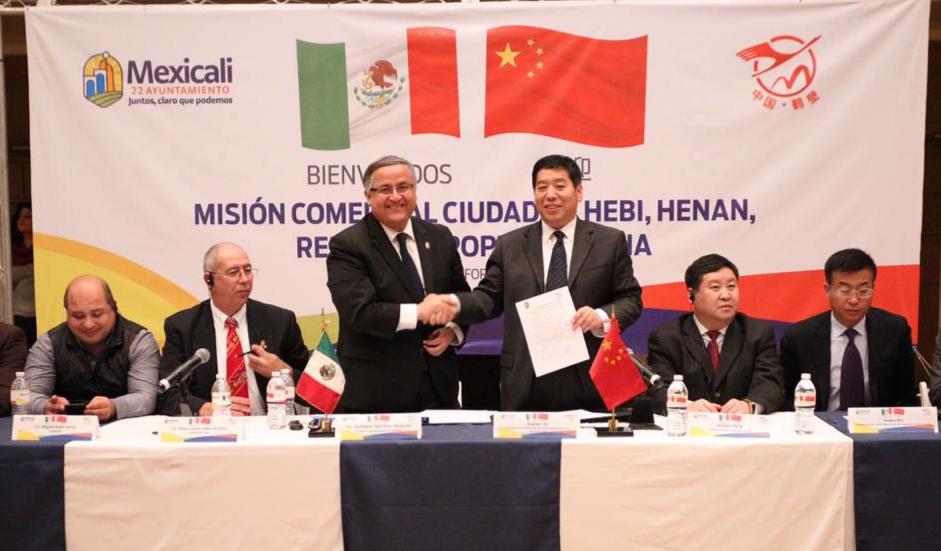 Con la finalidad de fortalecer la cooperación mutua y de amistad entre Mexicali y la ciudad china Hebi, autoridades municipales de ambas comunidades, encabezadas por el Presidente Municipal de Mexicali Gustavo Sánchez Vásquez y Presidente del Comité Permanente del Congreso Municipal Popular de Hebi el Quanxin Shi, sostuvieron un primer encuentro que derivó en la firma de un Memorándum de Entendimiento entre ambas localidades, que sienta las bases para aprovechar las oportunidades de desarrollo comercial, turístico y cultural entre las dos ciudades.