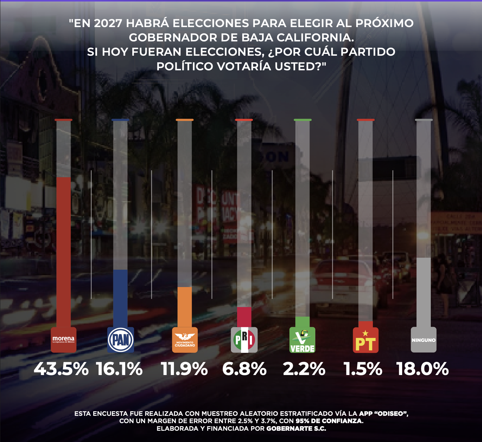- Diversas encuestas publicadas en agosto confirman que Morena conserva la preferencia ciudadana en Baja California, colocándose por encima de todas las fuerzas políticas.