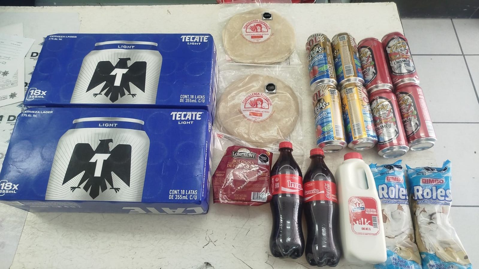 Una vez obtenidos los datos y versión del afectado, los agentes municipales actuaron rápido para implementar un operativo de búsqueda breve por los alrededores del comercio, logrando localizar al presunto responsable para detenerlo con el monto de lo robado, siendo éste varias cajas con latas de cerveza, paquetes de tortillas, leche, pan, embutido y dos refrescos; lo cual en conjunto dio un valor de poco más de 1 mil pesos.