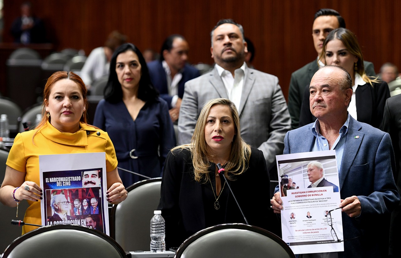 También comentó que el descaro es tal, que existe registro oficial en cámara de video, de la detención del vehículo de la Secretaría de Bienestar Social en el retén militar de la Laguna Salada resguardado por la Secretaría de la Defensa Nacional, en el que transportaba la cantidad de 4 millones de pesos en efectivo, retén en el que se presume estaban presentes Cynthia Gissel y su secretario particular quienes llevaban el moche.
