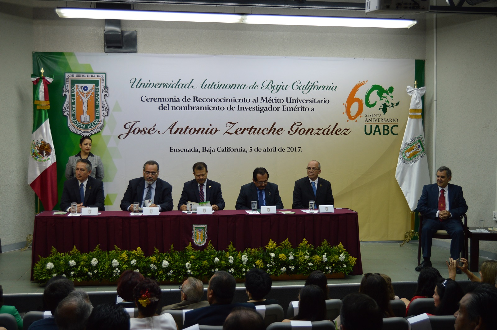 El Rector de la UABC, doctor Juan Manuel Ocegueda Hernández, a nombre de la comunidad universitaria y la sociedad bajacaliforniana, agradeció al doctor Zertuche González sus 32 años de labor ininterrumpida en la UABC, dedicados a la investigación, principalmente enfocada en el tema de las macroalgas marinas del pacífico templado mexicano y el Golfo de California, que lo hizo merecedor a que una nueva especie lleve su nombre: Chondracanthus zertuchei.
