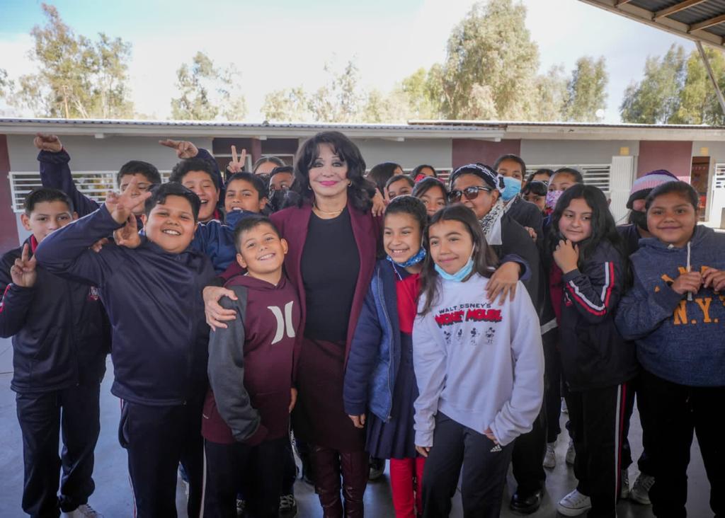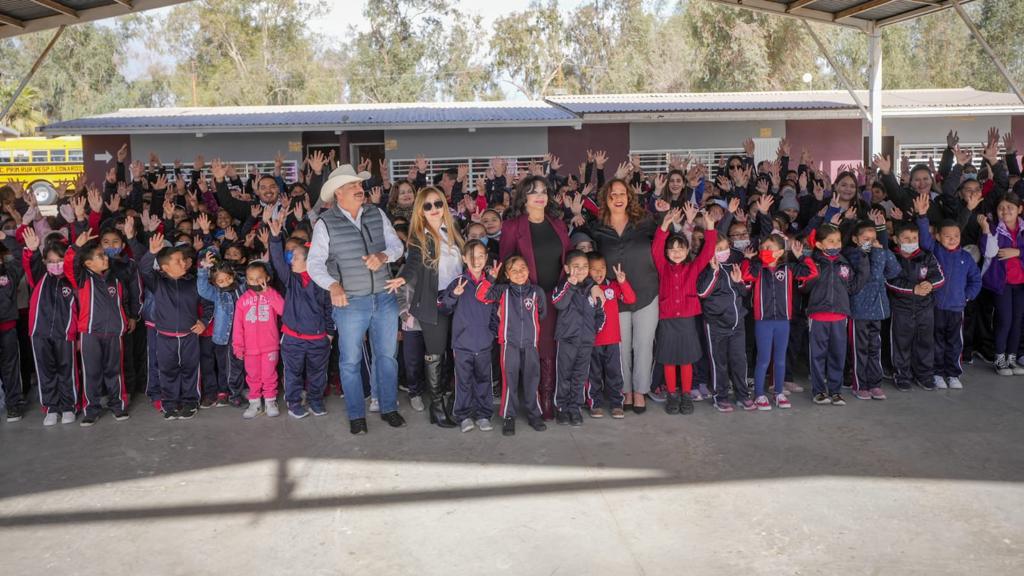 Mexicali, B.C. A 01 de marzo de 2023.- Con el propósito de acercar a las niñas y niños a la historia local, la presidenta municipal Norma Bustamante Martínez encabezó la ceremonia cívica que da inicio a los festejos por 120 aniversario de la ciudad, en la escuela primaria “Melchor Ocampo” en el ejido Michoacán de Ocampo.
