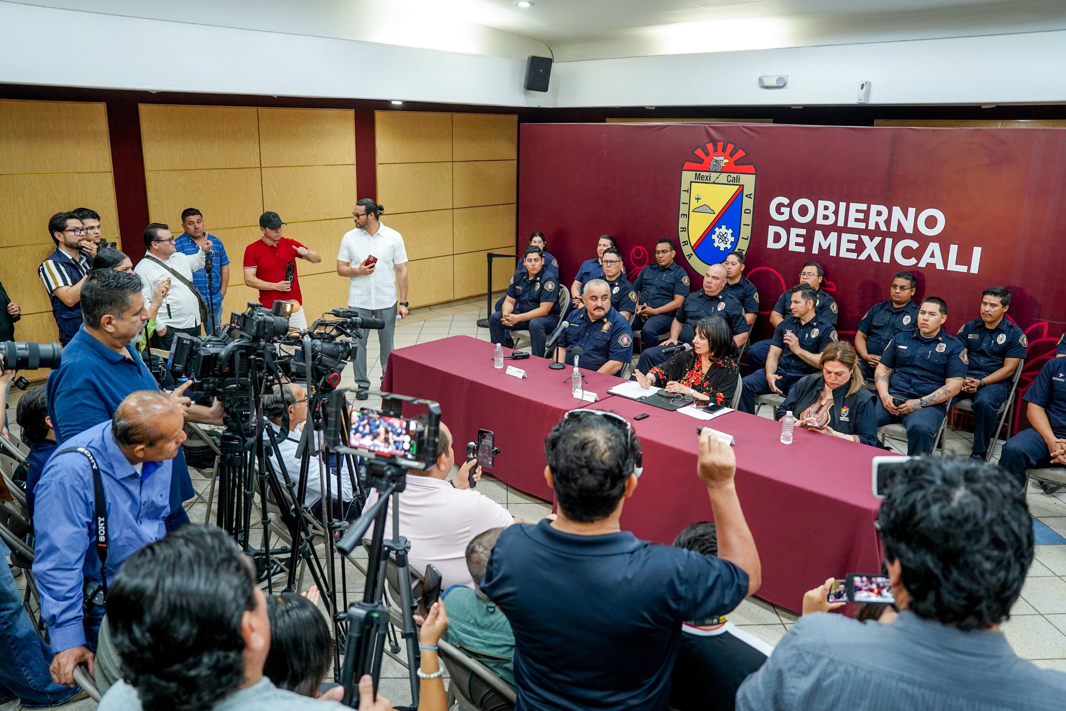 Mexicali, B.C. A 03 de julio 2025.- La alcaldesa de Mexicali, Norma Bustamante, reconoció hoy en rueda de prensa la valentía, fuerza y solidaridad de los elementos del Heroico Cuerpo de Bomberos que se unieron a la lucha para combatir los incendios forestales en el municipio de Tecate.