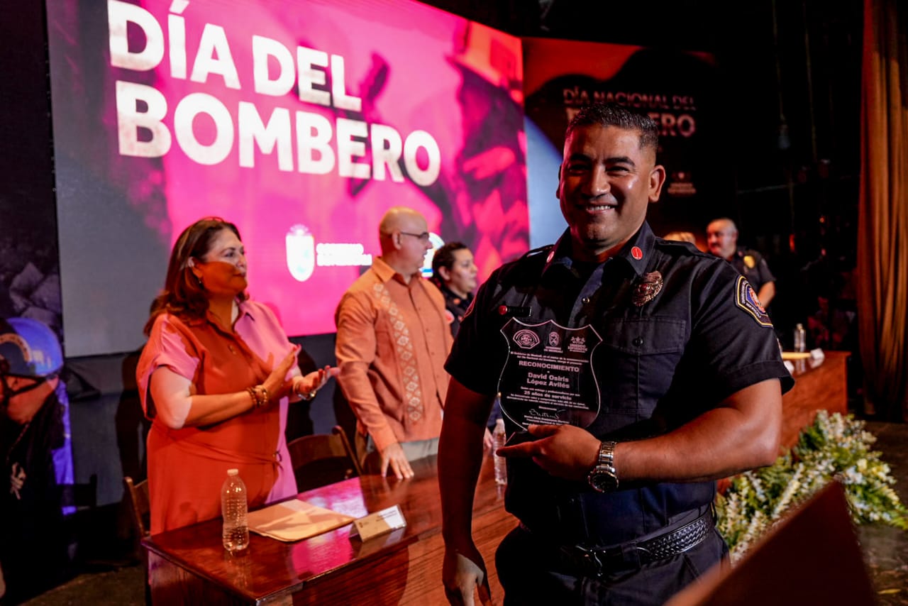Posteriormente, se llevó cabo la ceremonia oficial en la Casa de la Cultura de Mexicali en donde, se reconoció la trayectoria de elementos que cumplieron de 15, 20, 25 y 30 años de servicio, junto con la entrega de apoyos económicos por el “Día Nacional del Bombero y uniformes.