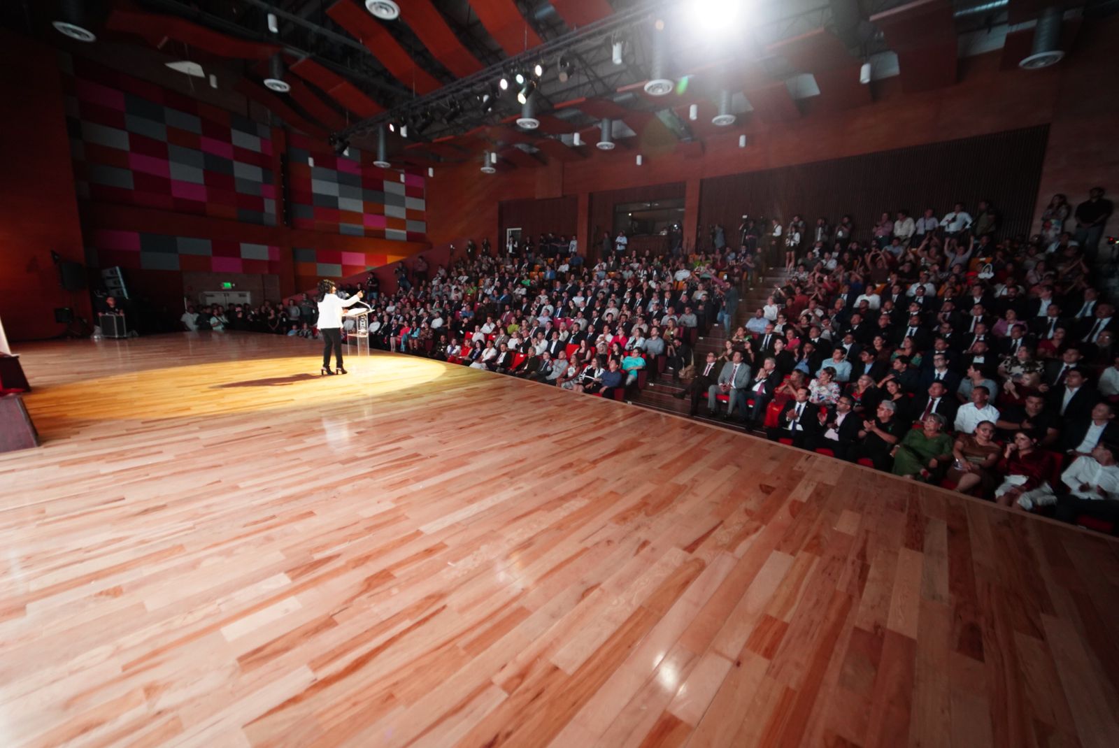 En su discurso, la alcaldesa de Mexicali presentó las acciones más relevantes de los cinco ejes de su gobierno; Mexicali Seguro y en Paz, Mexicali Crece, Bienestar para Todas las Personas, Gobernar para Servir e Igualdad de Género.