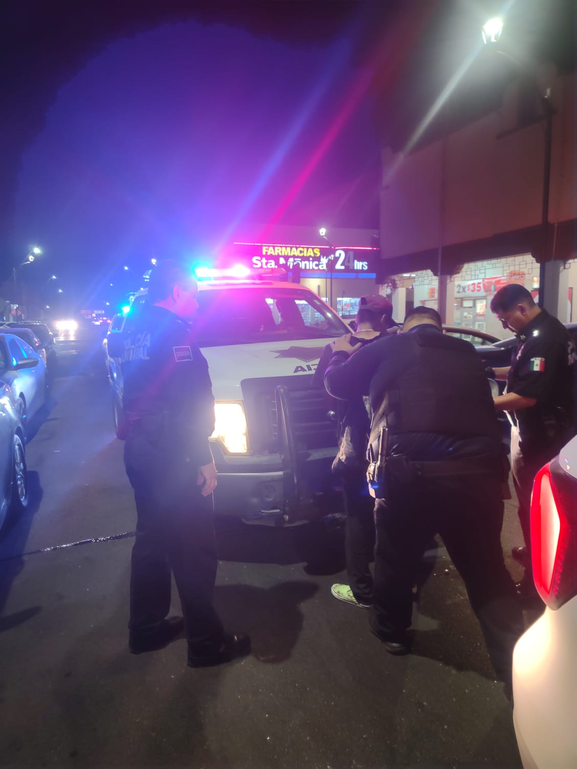Mexicali, Baja California, a 10 de agosto de 2025. Atendiendo las denuncias ciudadanas sobre el cobro por estacionamientos y vigilancia de vehículos en espacios públicos, agentes de la Dirección de Seguridad Pública Municipal (DSPM) detuvieron a cinco personas durante la noche del sábado y madrugada del domingo en la zona de bares, al Noroeste de Mexicali.