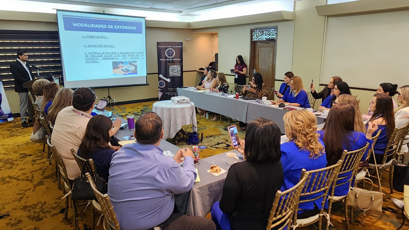 En la reunión se presentaron y reforzaron estrategias para identificar y combatir delitos como la extorsión y el fraude, además de difundir los servicios que ofrece la Fiscalía, entre ellos la atención ciudadana y los mecanismos alternativos de solución de controversias.