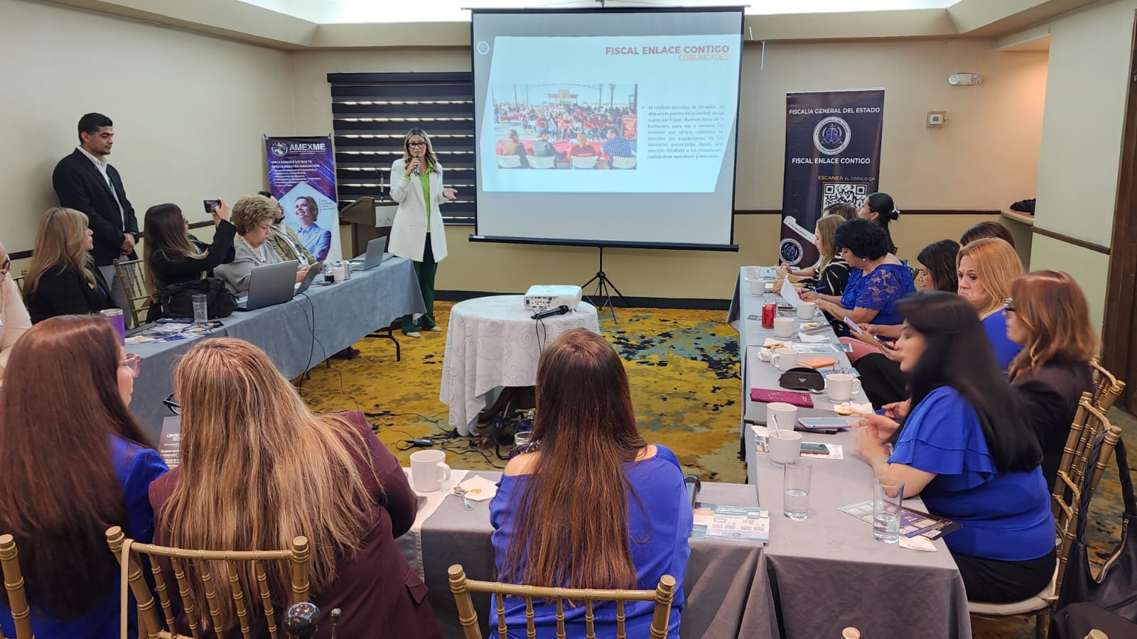Durante esta actividad del programa Fiscal Enlace Contigo con integrantes de AMEXME (Asociación Mexicana de Mujeres Empresarias), la Fiscal Regional destacó que la prioridad de la institución es brindar un acompañamiento cercano que proteja el patrimonio y la seguridad de quienes impulsan la economía local.