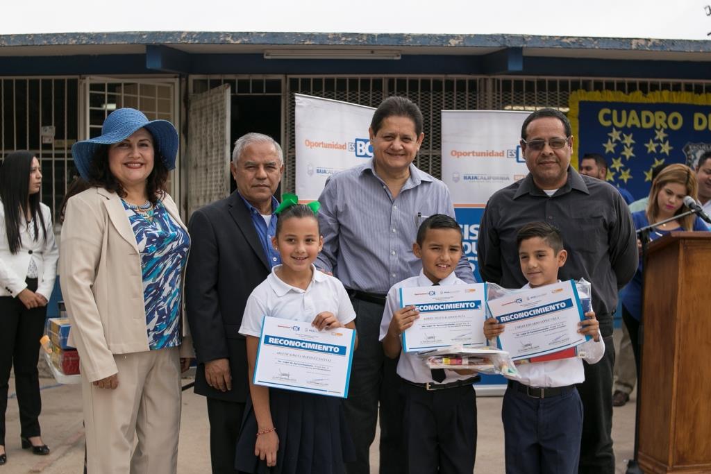 También entregó artículos didácticos y pedagógicos a la dirección escolar por su participación en el Programa Escuelas de Tiempo Completo.