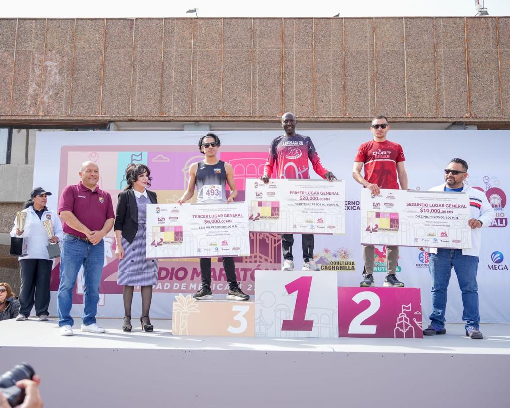 Posteriormente, Bustamante Martínez coronó a los siete primeros lugares de la rama femenil y varonil, quedando en primer lugar Julius Kibet Koskei y Leah Kigen, quienes recibieron la copa conmemorativa y un premio de $20 mil pesos.