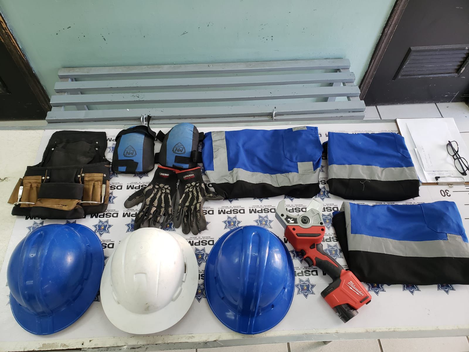 Se les aseguraron: una camioneta Ford Expedition modelo 2013 en color verde con placas 6WLW491 (California); 100 metros de cableado de 900 líneas propiedad de Telnor; tres chalecos de color azul; un caso de seguridad color blanco y dos de color azul; una cortadora de cable y bolsas porta herramientas.